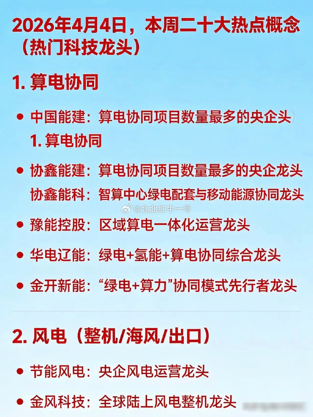 2026年4月4日,本周二十大热点概念(热门科技龙头)1. 算电协同中国能建:算
