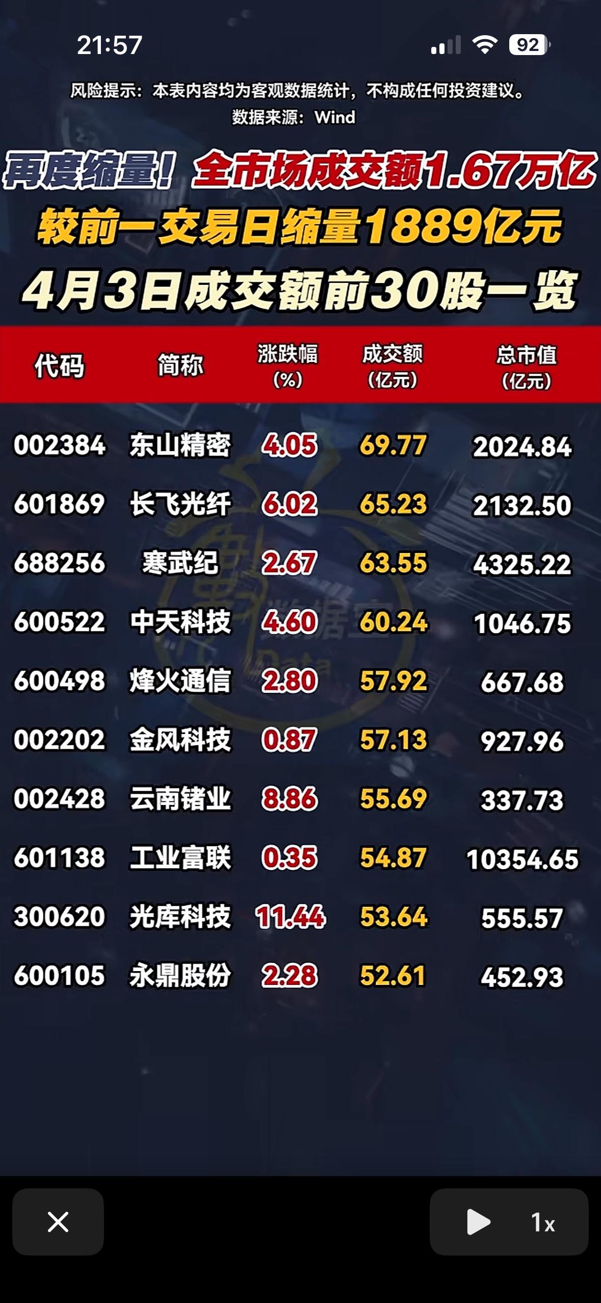 4月3日A股市场最核心的特征:在极度缩量(资金观望)的背景下,资金发生了剧烈的“高低切换”和“板块大挪移”。