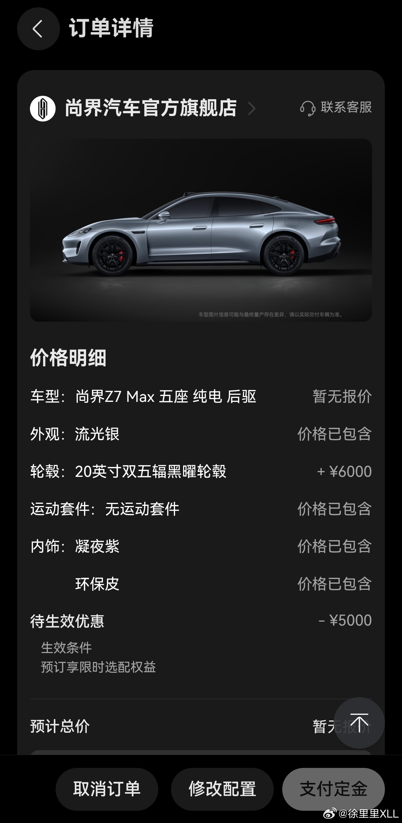订了台尚界Z7。