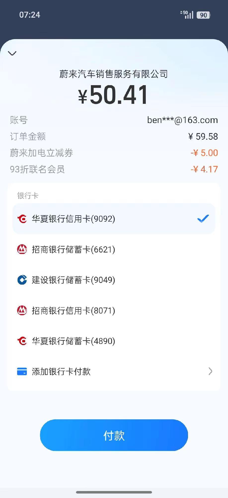 第一次换电交钱 给蔚来贡献50块蔚来 换电费用