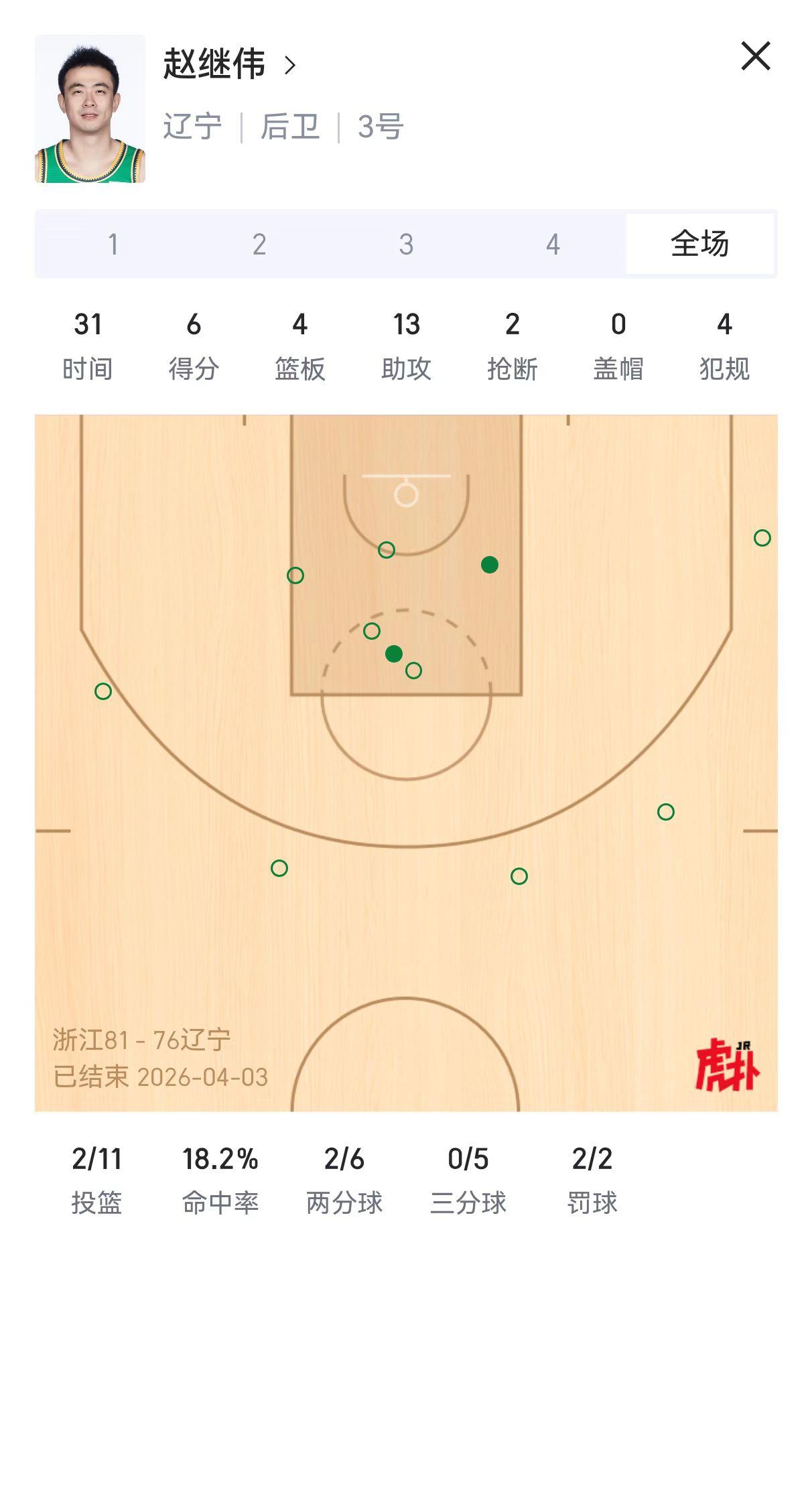 不得不承认赵继伟真的老了! 继上次被广州队18岁一年级小将张文杰防的接球都难受后,这次对上浙江稠州的18岁小将李悦洲,赵继伟又是打的非常挣扎! 两位小将甚至把赵继伟对位的发怒,使用了一些大动作。据统计在近五场场比赛中,赵继伟投篮51中8命中率仅15%。 现在的赵继伟受年龄和身高影响,进攻只有通过挡拆投三分这一招,他不像郭艾伦继续伤病不断年龄大了也能突破,小个子球员想突破得分没速度是非常难的。