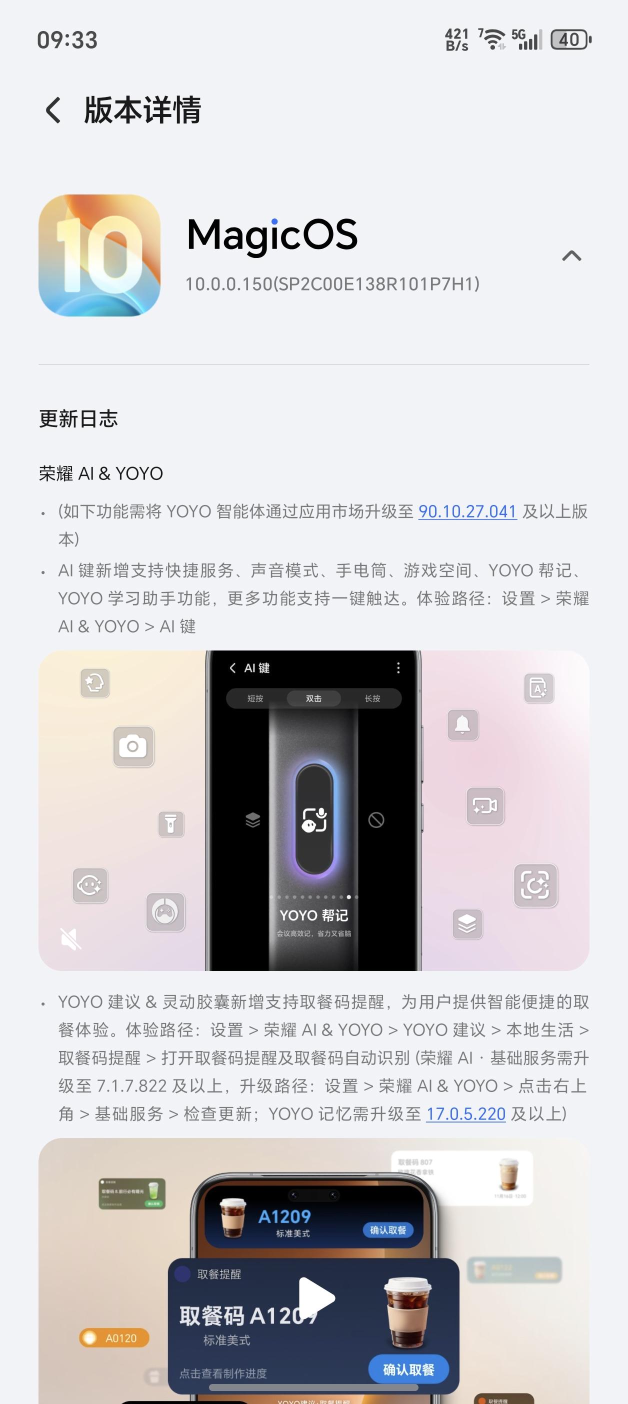 我的荣耀Magic8ProAir可算收到150尝鲜推送了,更新日志很长,最重