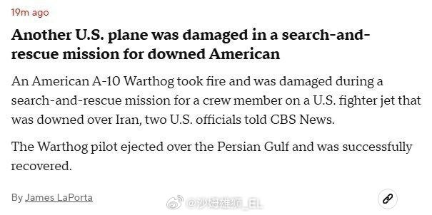 然后是掩护救援的一架A-10攻击机被击伤,受损程度无法返航,但飞行员设法将A-10拉到了波斯湾坠机,并在科威特获救。(此前美国媒体报告了一架A-10被击伤并返航,我个人怀疑二者说的是同一架,但最初的返航是假消息,当然也许真的是两架)
