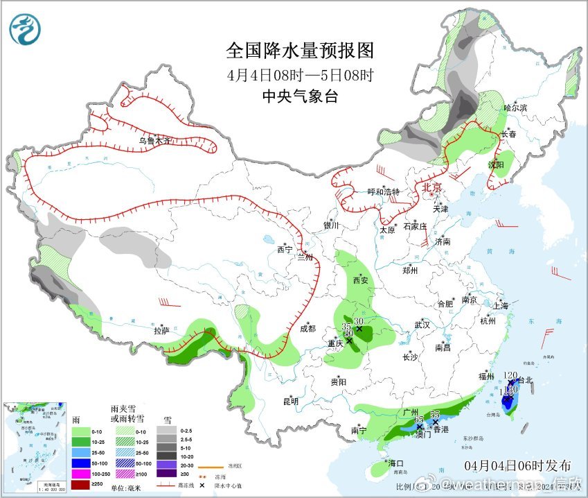 【雨雪和对流】昨天到今晨,北方高空槽+地面气旋,南方高空槽+低涡切变线,导致南北