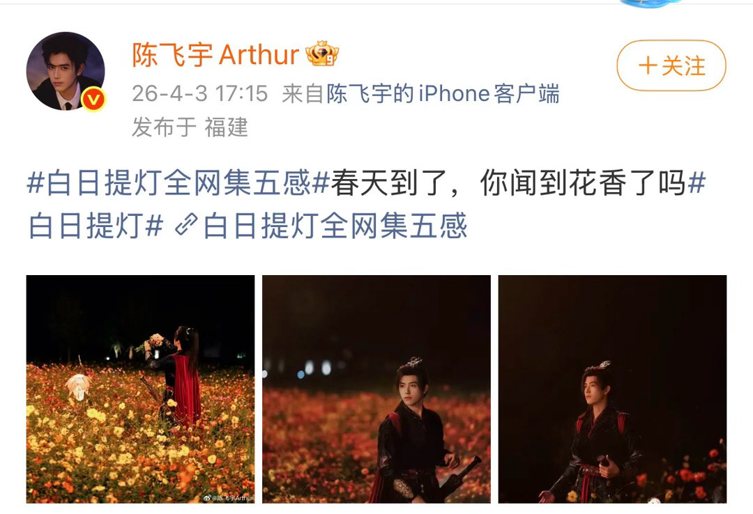 迪丽热巴陈飞宇问你闻到花香了吗白日提灯 被思胥万千甜到睡不着!戏里交换嗅觉的互动太好嗑,陈飞宇戏外的隔空喊话更是锦上添花,今晚继续追剧嗑糖