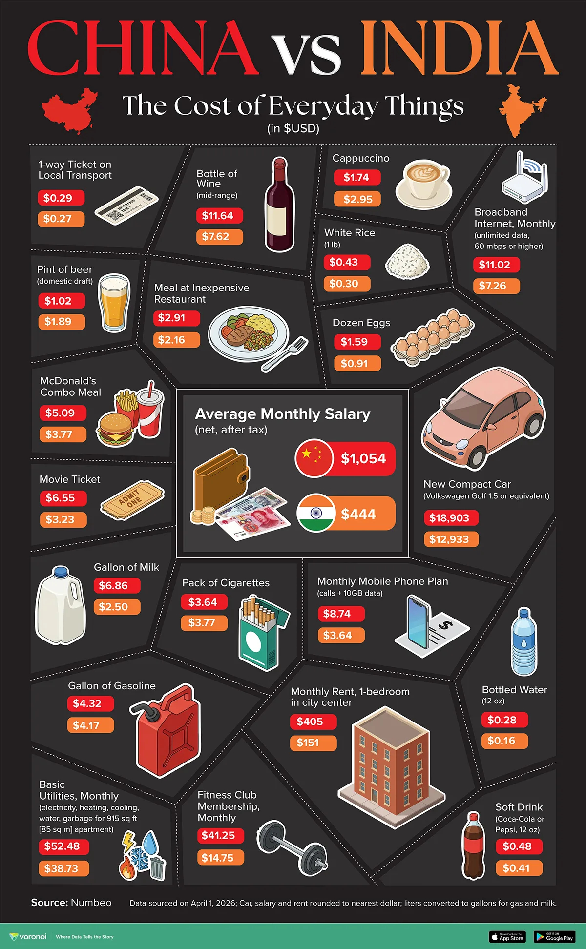 中国与印度,日常消费品的价格,谁更低?1. 中国与印度,大多数日常用品价格都低于