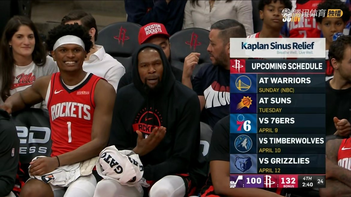 火箭轻取爵士取得五连胜!火箭继续排名第五,拉开了和森林狼的差距到2胜场,距离掘金