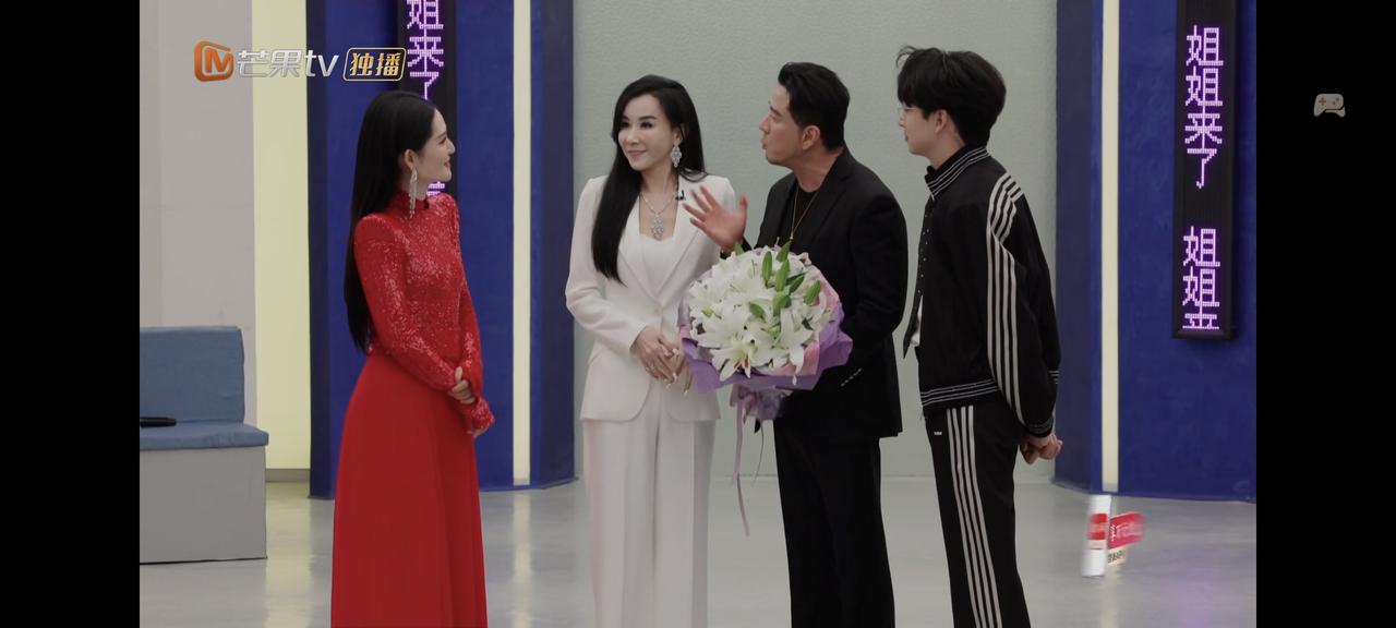 萧蔷舞台上走的几步,气势汹汹,里面的吊带是歪的。刚开始还以为是故意的。后来看到在后台,衣服调整过来了。 57 岁的姐姐,这张脸算逆天了,但是也借助了科技。 她站在谢娜旁边,脖子都缩回去了,一下子气质就没了。 当年她真的挺美,但是有种魅惑的美,不是那种纯天然。 看来,浪姐真的是一个让女星现原形的节目。