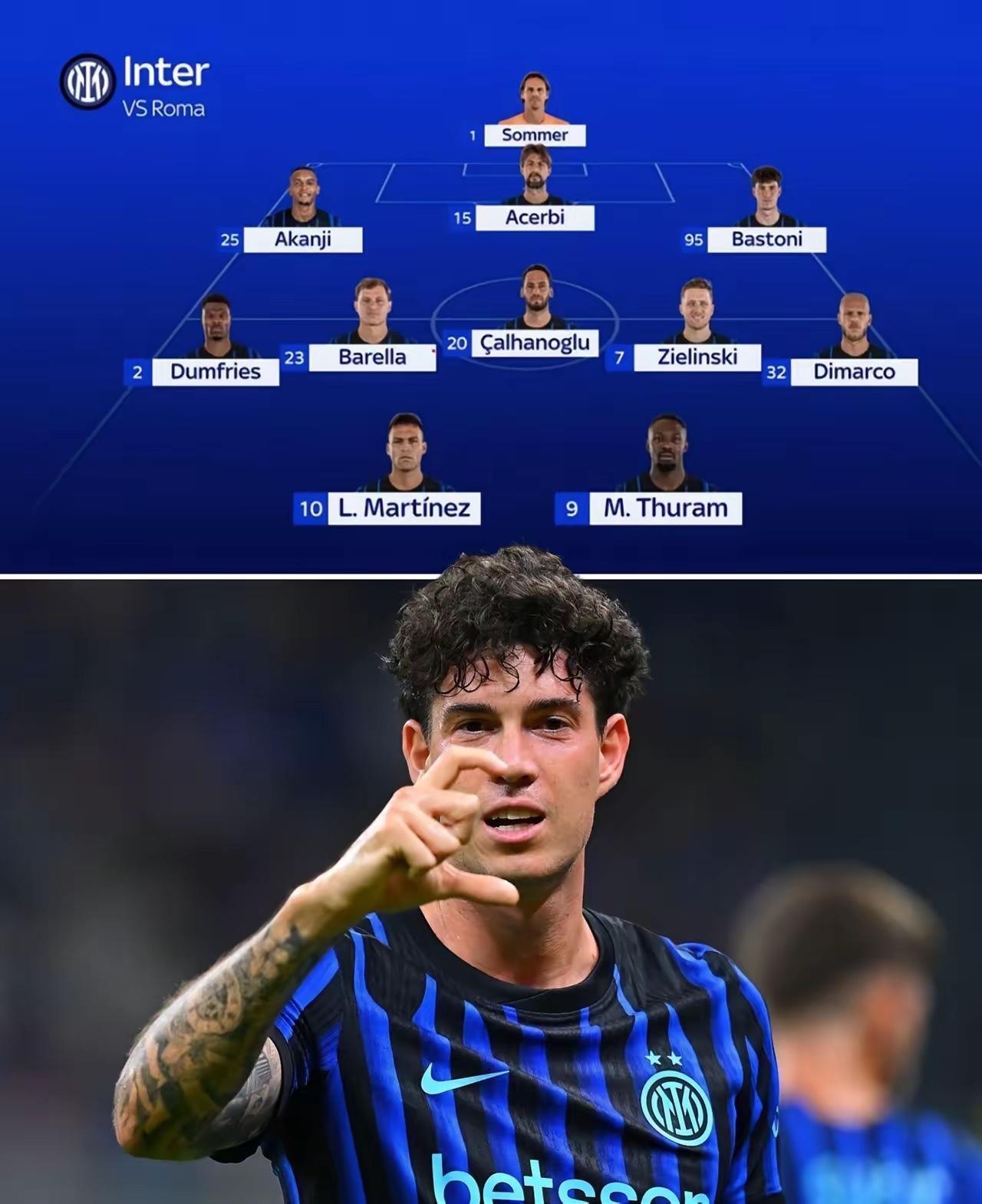 最己阵,全力出击!国际比赛日结束,意甲第31轮即将开打。排名榜首的国际米兰主场迎战排名第6的罗马,这场对于国际米兰来说是一场非赢不可的比赛。 为了迎战强敌,国际米兰主教练齐沃将安排最强阵以全主力出击。门将索默,后卫线阿坎吉、阿切尔比和巴斯托尼一字排开(比塞克因伤缺阵);中场恰尔汗奥卢居中,泽林斯基和巴雷拉出任左右中场,迪马尔科和邓弗里斯分居两翼;前锋伤愈复出的队伍劳塔罗与小图拉姆双剑合璧。 这是目前国际米兰理论上的最强阵容了,另外期待巴斯托尼别受国家队因素的影响,能全身心投入比赛。 国际米兰最强阵出击,全力以赴,拿下胜利,继续保持积分领先优势,向冠军冲刺。