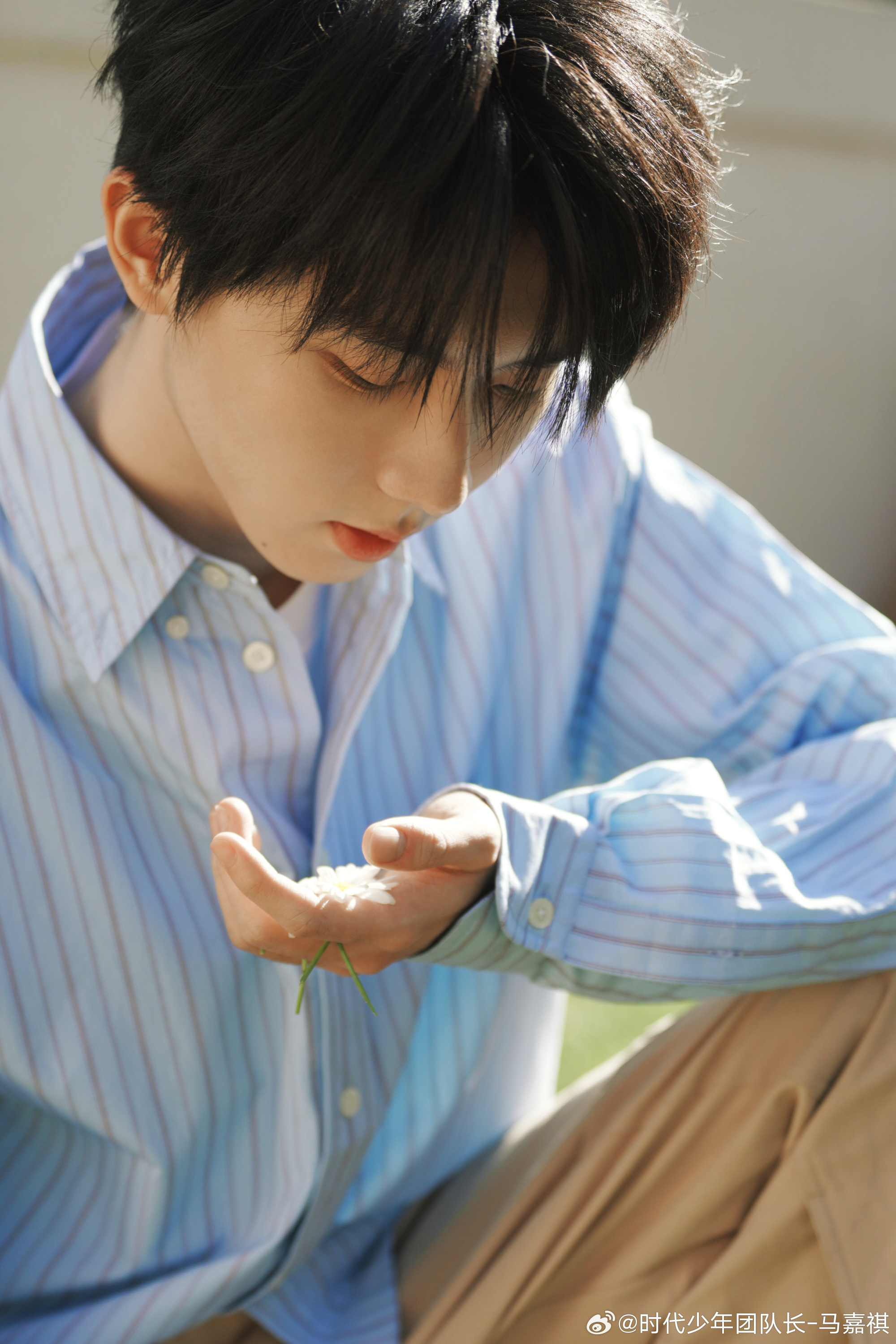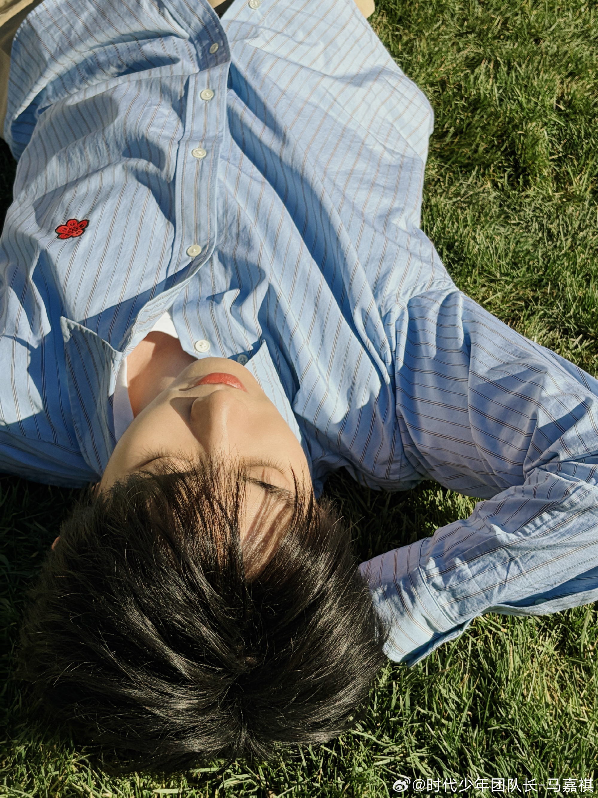 马嘉祺去踏青随拍 马嘉祺更新去踏青随拍蓝色条纹衬衫清爽帅气,阳光下超治愈周末福利