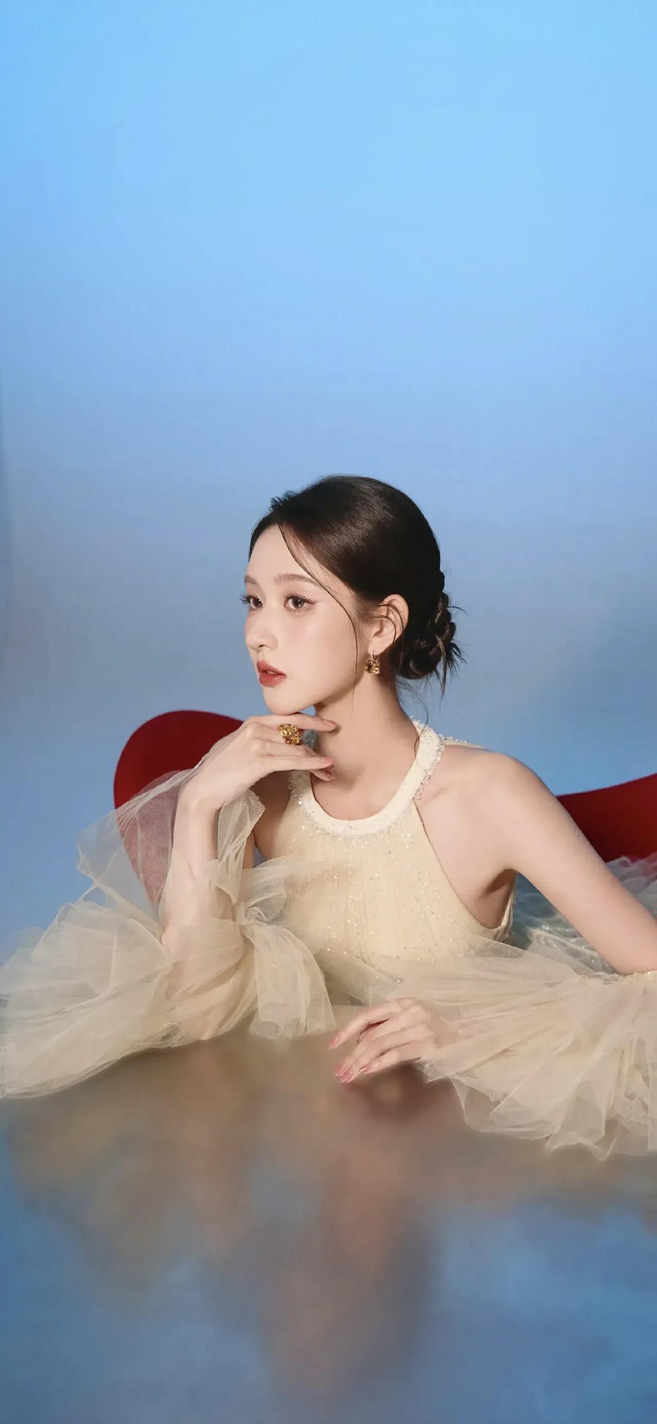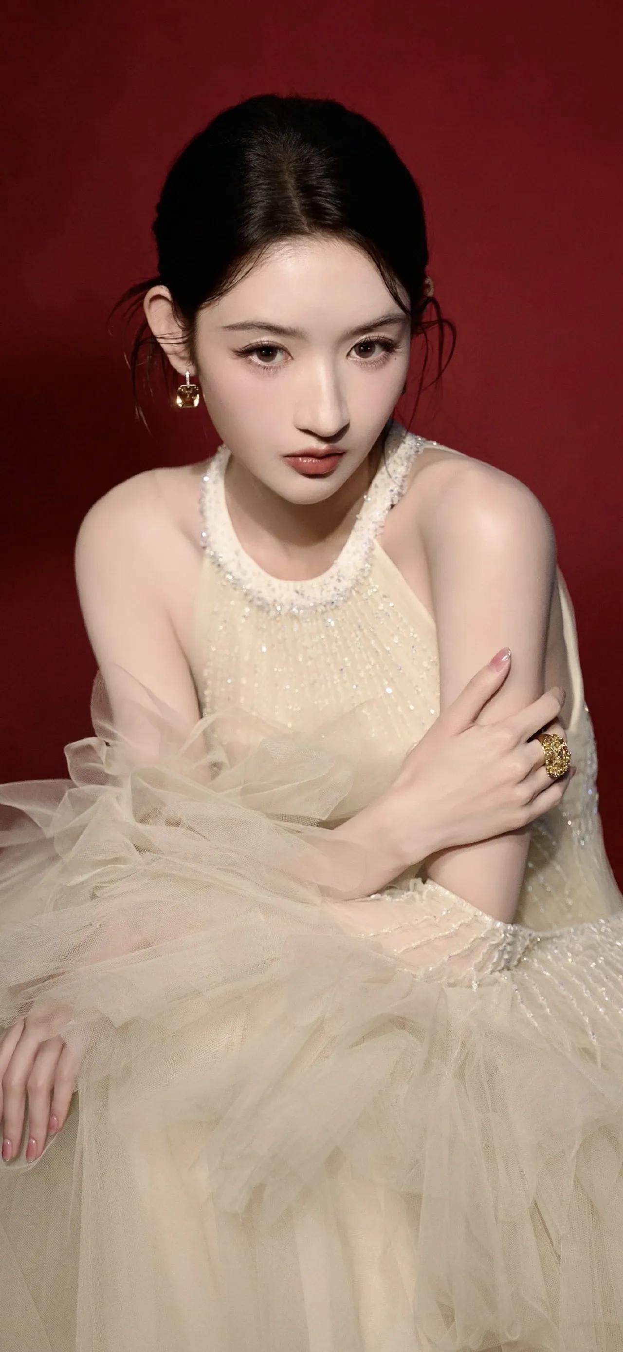 美女壁纸~王玉雯,轻纱漫舞,鎏金点缀,浅杏色纱裙裹着温柔与灵动。蓬松裙摆漾开浪漫,金饰衬得眉眼愈发清丽,在蓝与红的光影流转间,把少女的灵动与优雅,酿成了一眼心动的诗意