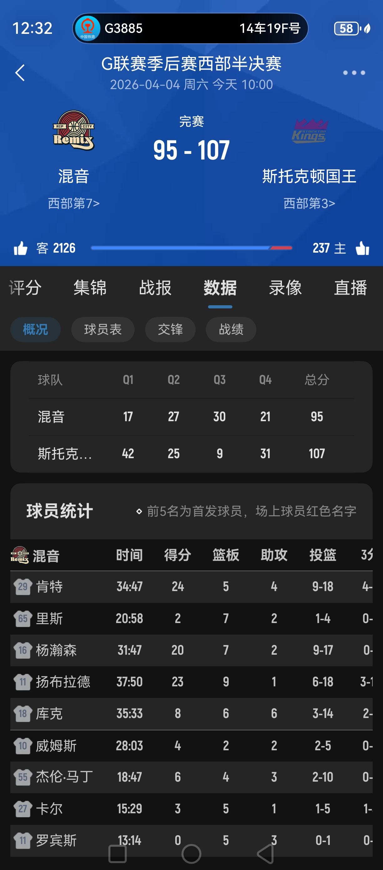 杨瀚森20分7板2助2盖帽!可惜无缘季后赛西决! 这场杨瀚森明显体能好多了,面对矮一头以内线对手,也更多的选择自己来,而不是传球!效果非常好! 无奈对手整体实力更强! 可以了!这个赛季,打了G联赛季后赛!还可以打NBA季后赛![赞][赞][赞][赞]