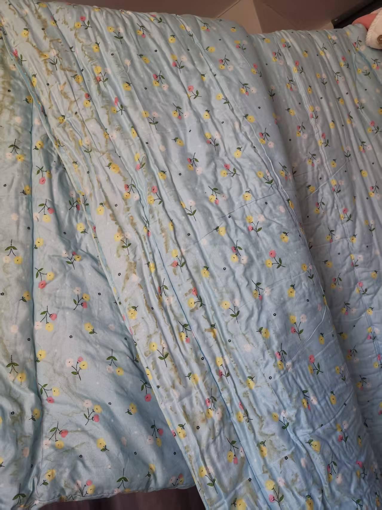 我干了一件蠢事,把棉花褥子洗了。 小时候经常见我妈晒棉花被子,她每年都会把被里被面洗洗重新套上,从不见我妈洗棉被。 我问过我妈,为啥不洗被子,被子用一年了不洗不脏吗? 我妈没告诉我原因,只说傻子才去洗棉胎。 前天,我终于按捺不住好奇心,把我1米2乘2米的棉花褥子洗了。 开始我打算把棉褥子塞进洗衣机里,塞到一半发现我估算失误,棉花不像丝棉被那样软,薄,根本塞不下。 没办法,我只有拿出大盆,把棉褥子放进大盆里,放了水和洗涤剂,跳进去用脚踩。踩出来的水都是黄色的。然后又涤了三遍,控了一夜的水,又费了九牛二虎之力,终于把它晾在了阳台上。 棉被晒干之后我傻眼了,上面一道道黄黄的印记像地图,不知道的还以为家里有个尿床的孩子呢。 这下终于知道为啥棉被不能洗了。 真是不听老人言,吃亏在眼前啊,看着被洗废的棉褥子我头疼了,这棉褥子还能要吗?