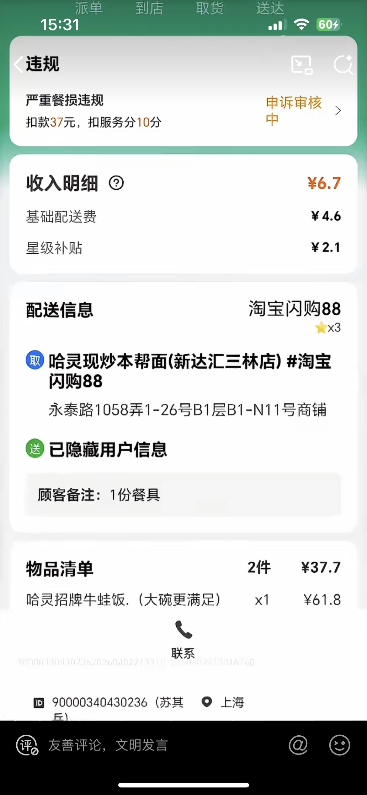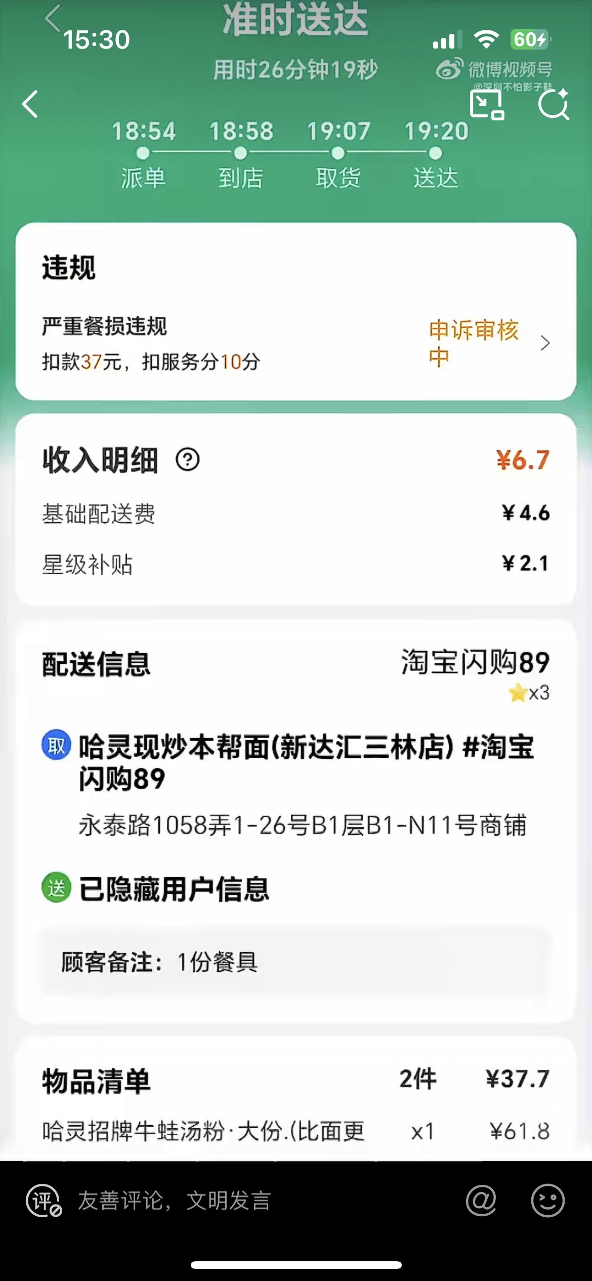 明明送的餐就在门口,上海小仙男却说没收到,害得外卖员被扣 37 块,罚了 10