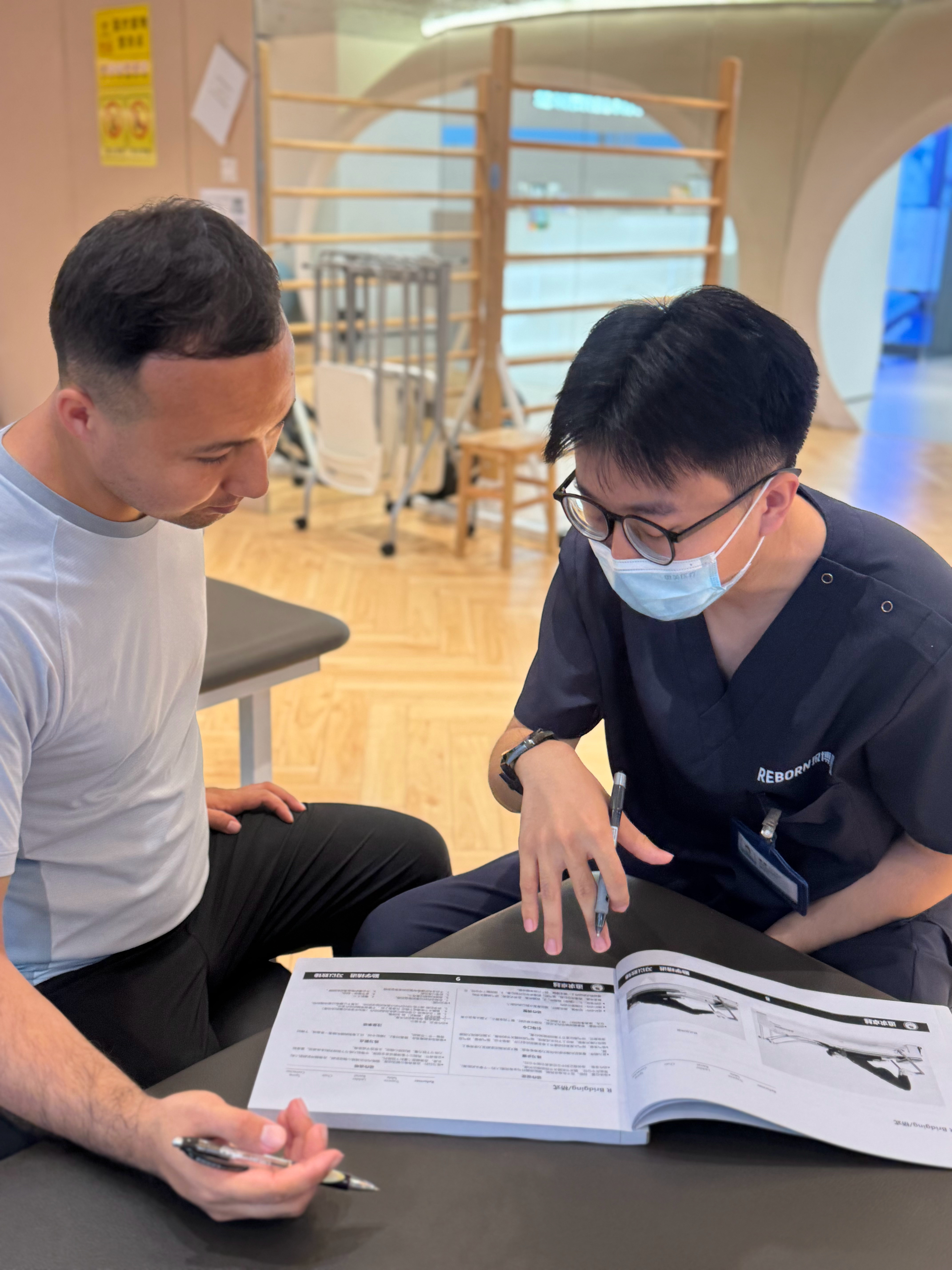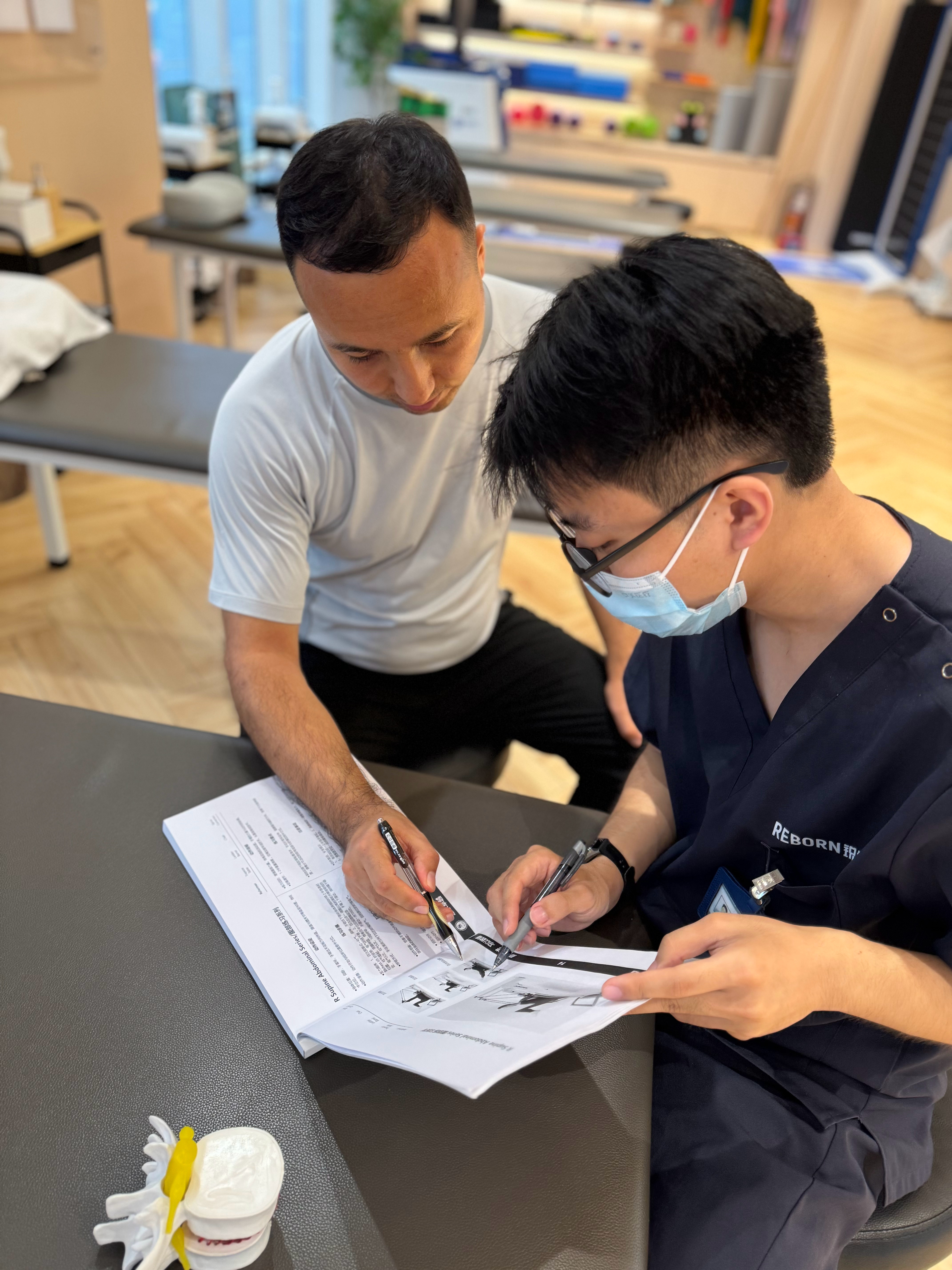 运动康复 昨天看到深圳店的一份照片记录,康复师和患者一起拆解训练计划,讲解每一个动作原理和细节。