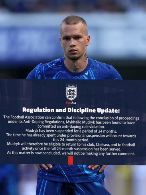 英足总正式官宣:穆德里克禁赛24个月。再不宣布,穆德里克的禁赛都要超期了。 英足