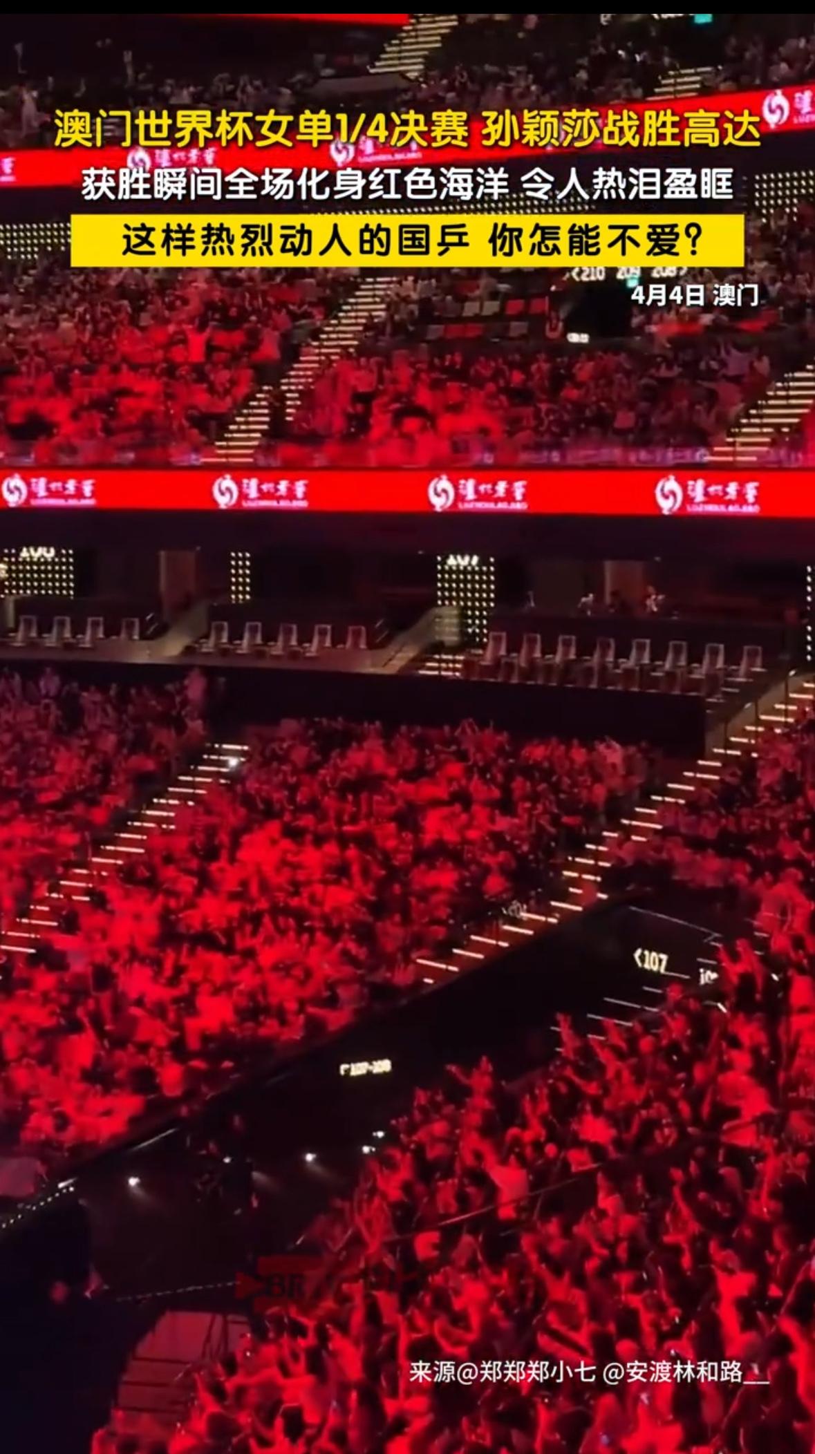 莎莎进入四强,可是真的让人羡慕,马琳送上拥抱,太厉害了! 孙颖莎不到最后一刻都不放松,以为要输了,但是追平超越才是真牛! 高达可是外协强劲的对手,胜利的那一刻全场热烈,祝福声满满,真的太爱莎莎了,这是超级的喜悦,不言而喻,全场沸腾的爱淋漓尽致表达!