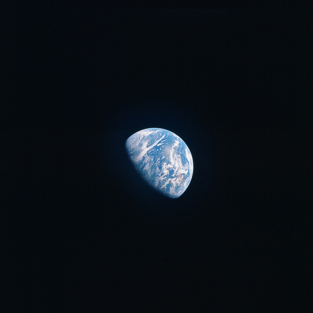 图1:1971年,阿波罗15号宇航员阿尔·沃登执行完登月任务,从月球返回地球时,用一台70毫米的哈苏相机,拍下了夜晚的地球。图2:2026年,阿尔忒弥斯2号宇航员在前往月球时,拍下的地球之夜,可以看到左下角的非洲,右下角的南美洲有人类的灯光点点,右下的“光弧”则是即将到来的黎明。图3:阿波罗15号拍下的晨昏线中的地球图4:阿尔忒弥斯2号拍下的晨昏线中的地球。