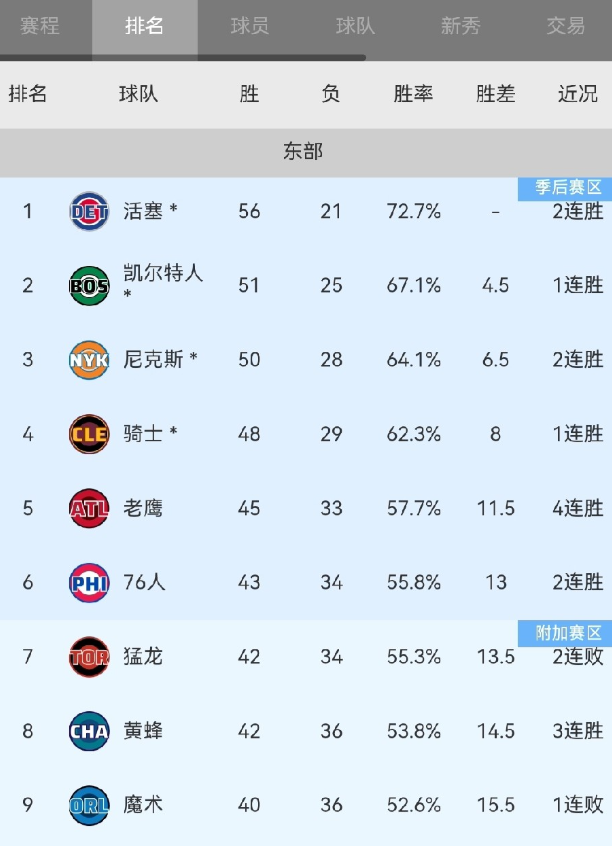 NBA常规赛,尼克斯主场136:96大胜公牛,喜提两连胜。这样一来,战绩来到50胜28负,领先骑士48胜29负1.5个胜场,继续排名东部第三!