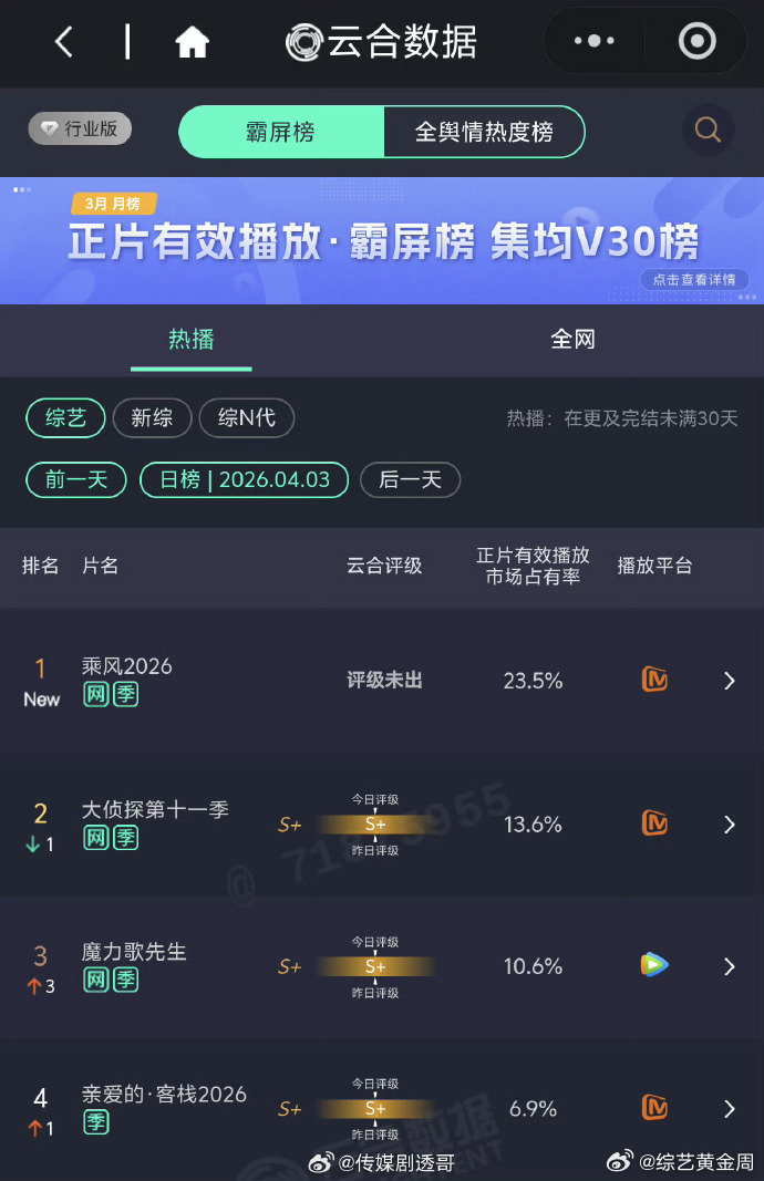 乘风2026第一从云合到豆瓣再到微博,全平台第一,乘风 2026 实火!乘风20