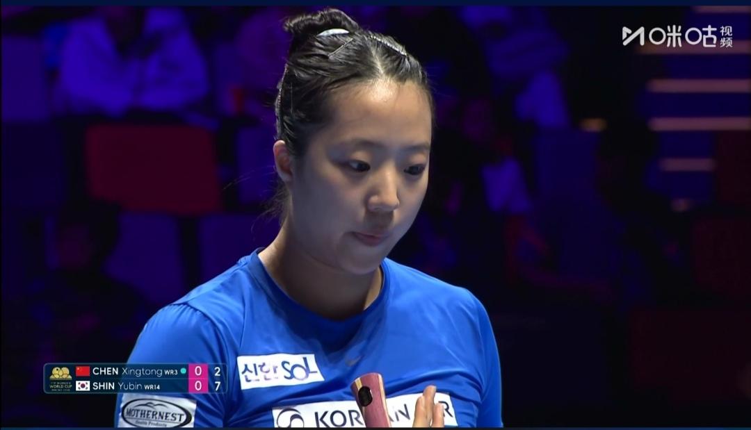 澳门世界杯1/4决赛,陈幸同第4局0-11吞蛋! 澳门世界杯女单1/4决赛 3/4区,陈幸同对阵韩国申裕斌。 众所周知“韩申”近来涨球了,胜了日本削球手桥本帆乃香、德国削球手韩莹,说明正手能力较强。 陈幸同单打世界排名第三,赛会3号种子。 国际赛场双方交手四次,陈幸同全胜。 第1局,韩申先下手了,2平后,同同连丢6分,2-8落后。同同4-10落后,走追4分,8-11告负。 第2局,3平后,同同一直领先,被追至10-9,请求暂停。同同11-9扳平比分。 第3局,局初3平,局中6平,同同还10-8领先,被韩申连得4分,10-12告负! 第4局,陈幸同0-11吞蛋! 又被逼到1:3的绝境! 第5局,9-11败。 陈幸同1:4负韩申。 半决赛 韩国申裕斌Vs王曼昱与日本桥本帆乃香1/4决赛比赛的胜者