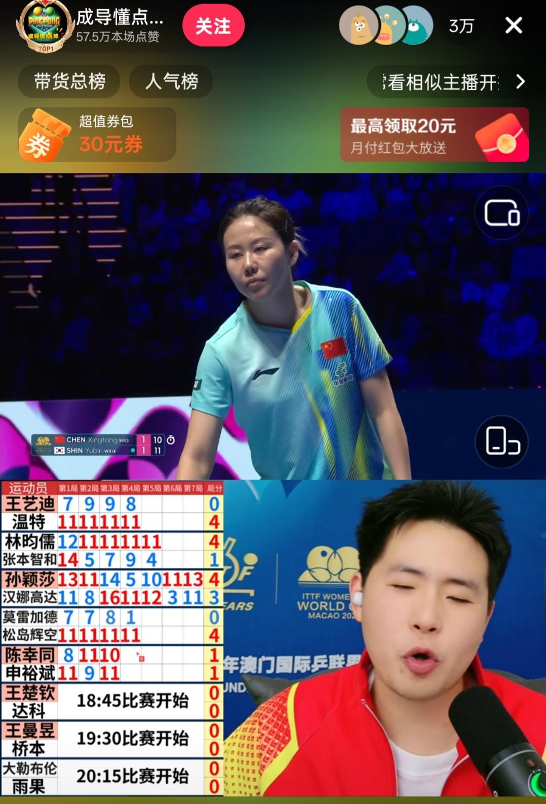 陈幸同对战申裕斌,被轰了个0分,太让人费解了! 一比一平后,第3局申裕斌好专注,好冷静,连续追分,陈幸同连追2个赛点。陈幸同比较一直比较淡,看不到任何气势。第4局,陈幸同被整的不会了。被打了一个11:0。被小将整的心态崩了。 不得不引起重视的是,现在的申裕斌已经不是去年的她了。也不知道怎么,技术突飞猛进了,跟王曼昱对决都打得难舍难分了。 这个圆脸女孩,2004年出生的,未来会是国兵的强劲对手!现在能治她的估计只有双子星了。