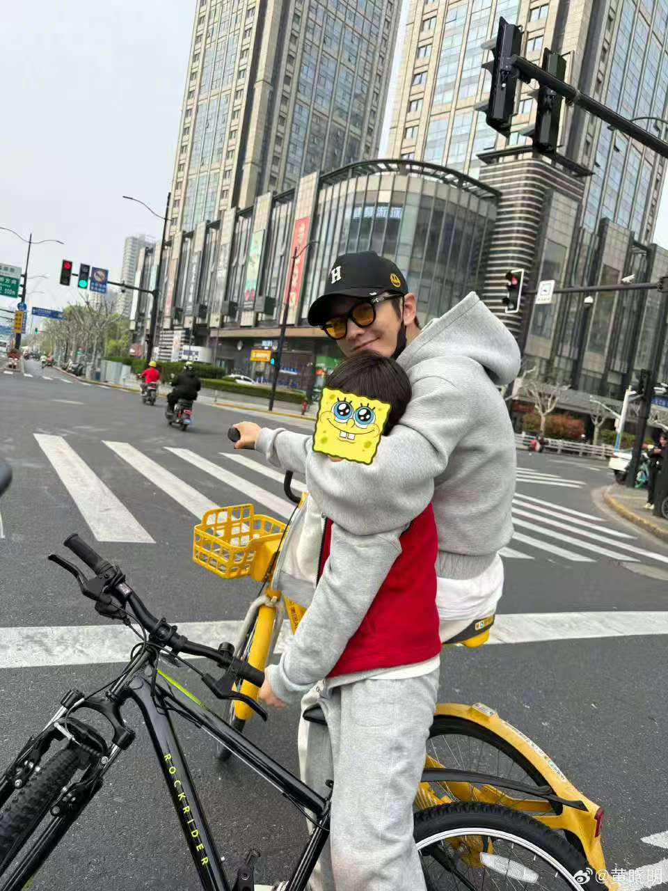 黄晓明小海绵骑行照黄晓明晒和儿子春日骑行照黄晓明发文晒和儿子春日骑行照,小海绵长