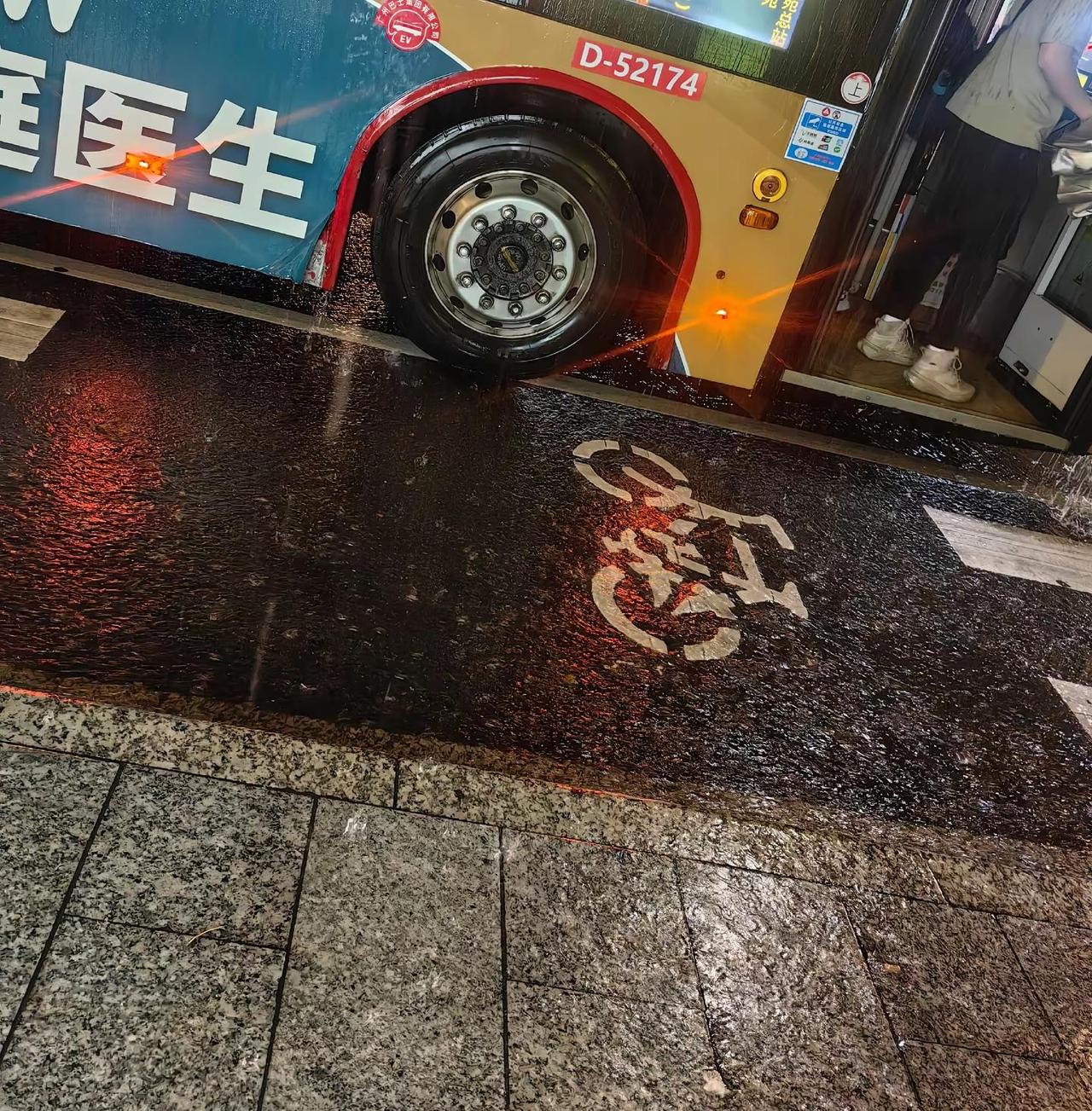 感谢185公交司机,大雨中只有您把车停在距离车站一步的位置,也许在您眼中是一件小