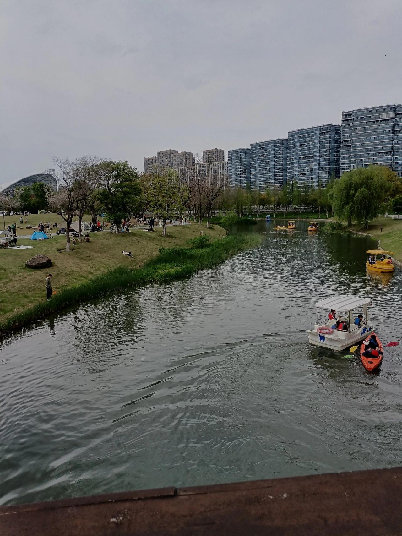 久不见家门口的公园,变化也很大啊!小船儿划起来,电动船开起来,帐篷搭起来,一眼望