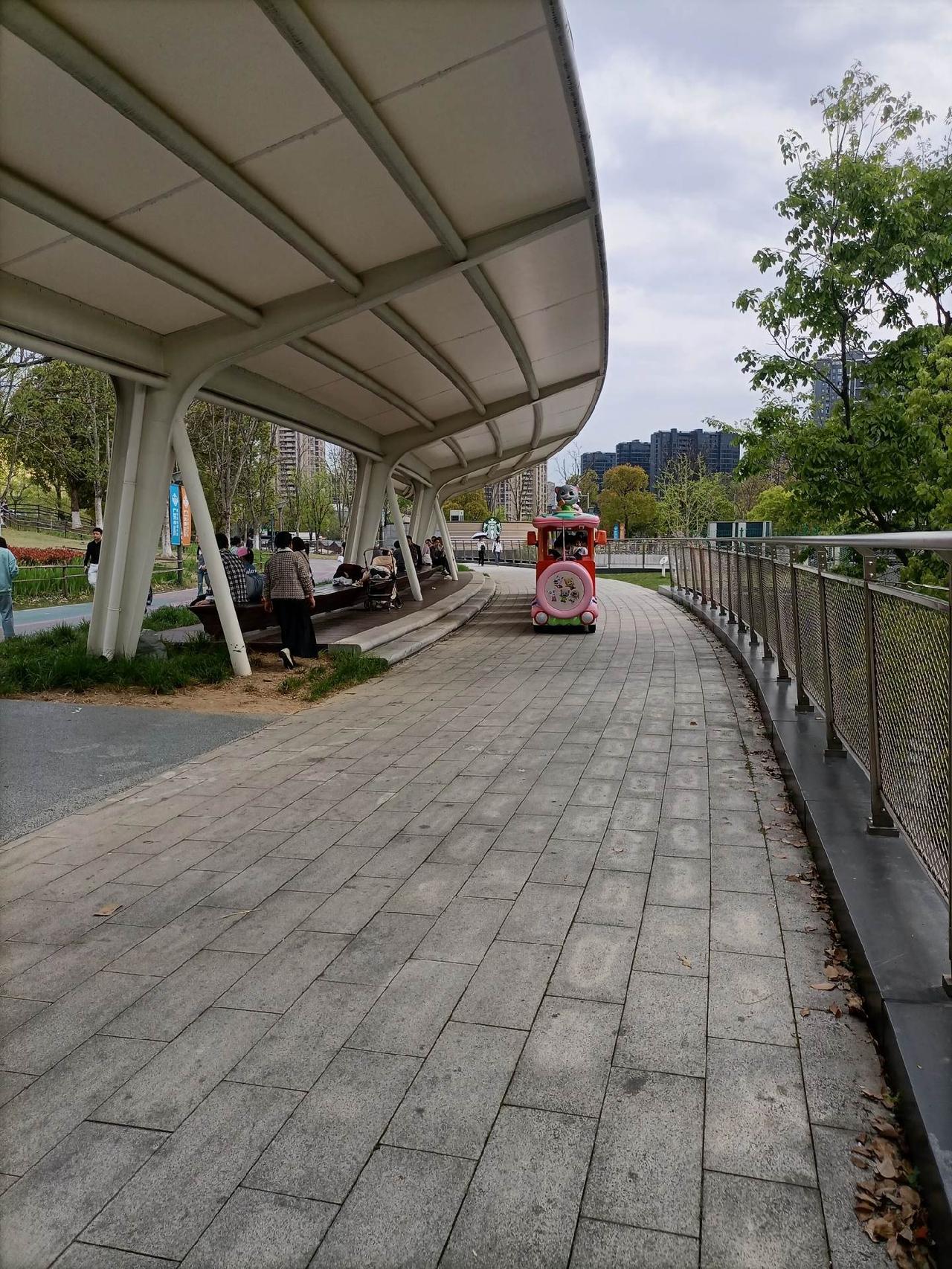久不见家门口的公园,变化也很大啊!小船儿划起来,电动船开起来,帐篷搭起来,一眼望去快变成帐篷村了[呲牙]。连小火车也轰隆隆迎面开来(图6)。