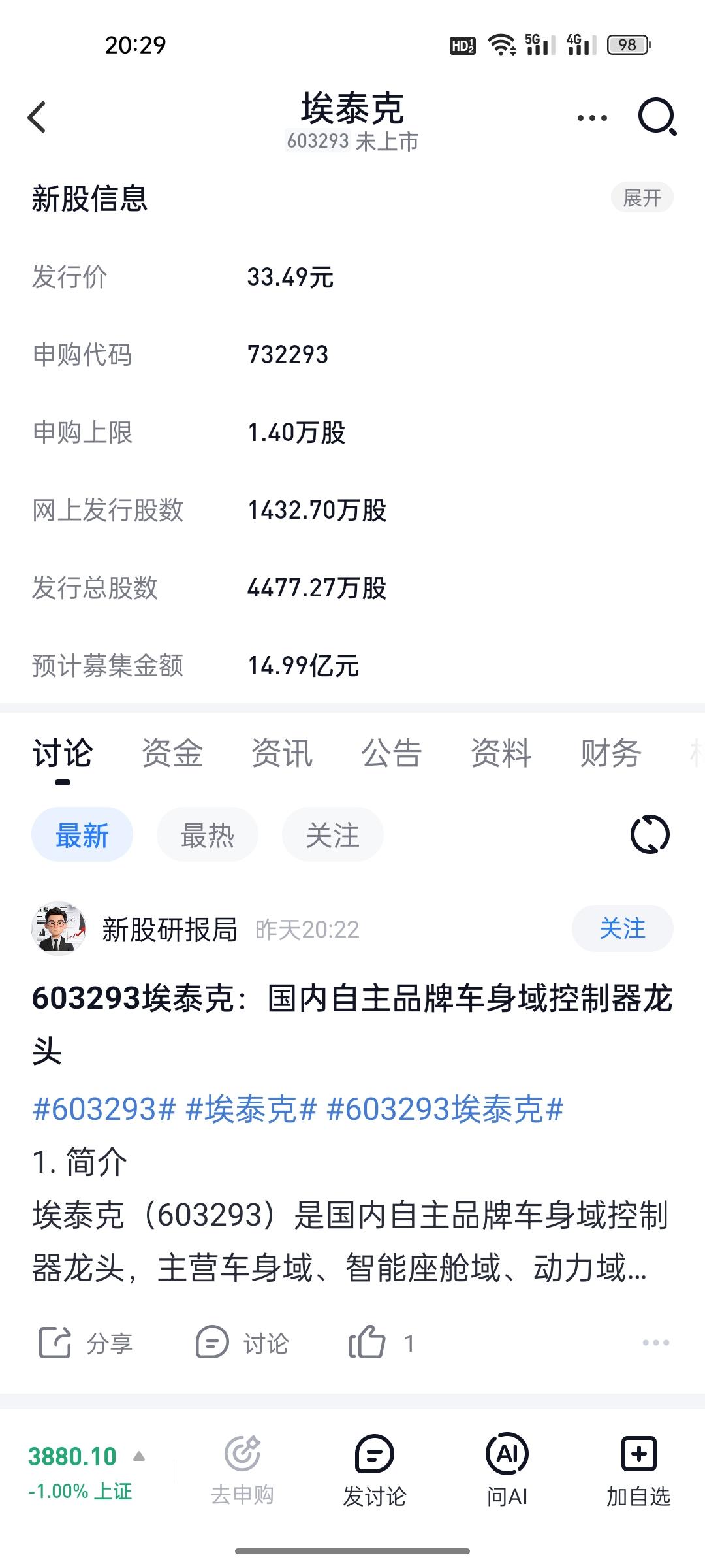 别错过!下周4只新股连发,打新盛宴来了!中一签或赚几万? 各位老铁们,打新的机会又来了! 下周A股市场一口气安排了4只新股申购,上交所、深交所、创业板、科创板全都有,一天一个,安排得明明白白。不管你是老股民还是刚开户的新手,这个机会都值得你动动手指头。 别嫌麻烦,万一中了呢? 4只新股各有千秋,看点十足。先给大家划个重点。 周二(埃泰克):汽车电子龙头,发行价33.49元已经定了。这家公司做的是车身控制、智能座舱、智能驾驶这些热门赛道的东西。汽车智能化是大趋势,这类公司不缺故事。 周三(尚水智能):锂电池前端设备供应商,全球首创的“循环式高效制浆系统”是它的杀手锏。新能源赛道虽然最近有点降温,但上游设备厂家的业绩确定性还是相对高的。 周四(盛合晶微):这是下周的“重头戏”。半导体先进封测企业,服务的是GPU、CPU、AI芯片这些高算力芯片。懂行的都知道,在摩尔定律逼近极限的今天,先进封装是延续芯片性能提升的关键路径。这个赛道,国产替代空间巨大。 周五(福恩股份):做再生面料的,听起来传统,但踩中了环保风口。全球服装品牌都在推再生面料,各国政策也在加码,这个细分市场正在快速扩张。 打新别盲目,这三条核心逻辑你要懂: 第一,看赛道,别只看名字。 很多朋友打新就是闭眼点一下,中不中全看命。但聪明的打新者会看行业。盛合晶微这种半导体封测、尚水智能这种锂电设备,都属于“硬科技”,上市后溢价空间往往更大。而埃泰克这种汽车电子,属于稳扎稳打型。福恩股份虽然偏传统,但有“再生”概念加持,也不能小看。 第二,看发行价和市盈率,心里有杆秤。 埃泰克33.49元的发行价已经出来了,你可以去对比一下同行业公司的市盈率。如果发行市盈率明显低于行业平均水平,那中签后的安全垫就厚很多。其他三只价格待定,等价格出来那天,记得花一分钟查查估值,别闭着眼睛乱打。 第三,坚持是打新唯一的“技巧”。 说实话,现在打新中签率确实不高,很多朋友打了一年都没中过。但你要明白一个道理:打新就像买彩票,不买永远不中,买了就有一丝希望。而且A股打新目前整体还是正收益的,尤其是科创板、创业板的新股,中一签赚几万的情况并不少见。 打新全部都打!一个别落下。别管什么主板、创业板、科创板,只要是下周这4只,全部顶格申购。 操作很简单:每天打开你的交易软件,找到新股申购,一键打新就行。全程不超过1分钟。 你可能会问:“万一破发呢?”现在A股新股发行机制已经比较成熟了,破发率很低。即便真有波动,只要你坚持打新、分散参与,长期看收益大概率是正的。 最后送大家一句话:打新这事,拼的不是技术,是坚持;中签这事,比的不是聪明,是运气。 上周有中签的朋友,欢迎评论区晒图,让我们也沾沾喜气!没中的也别灰心,下周继续战斗。 记住:每一次点击“申购”,都是离财富最近的一次机会。 祝各位下周都中签!评论区等你们的好消息!