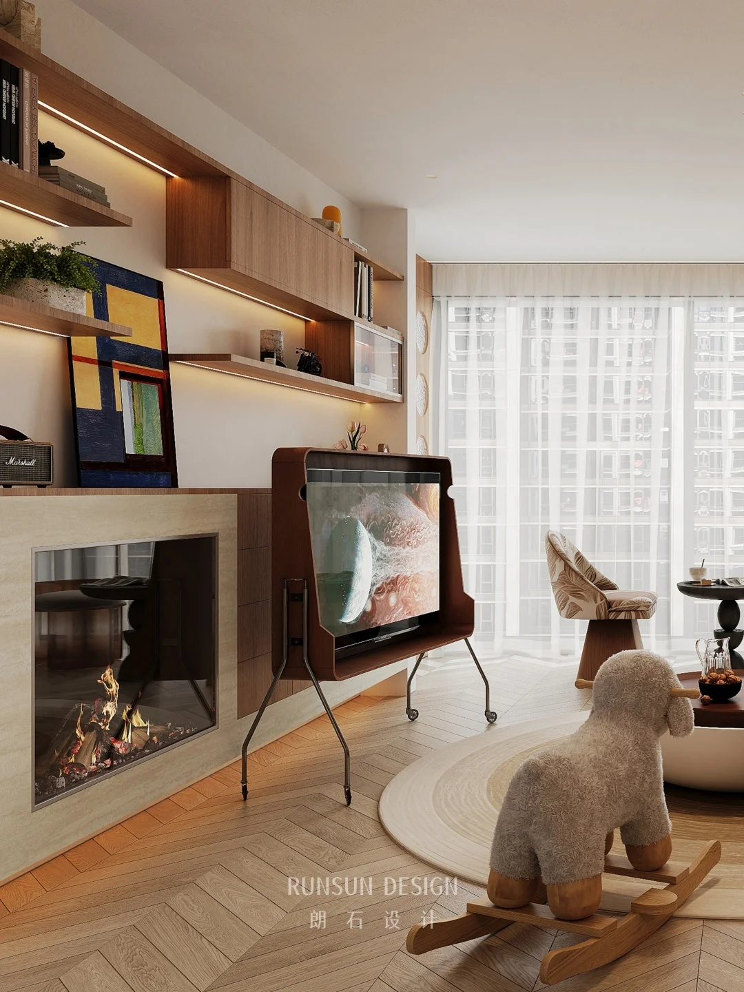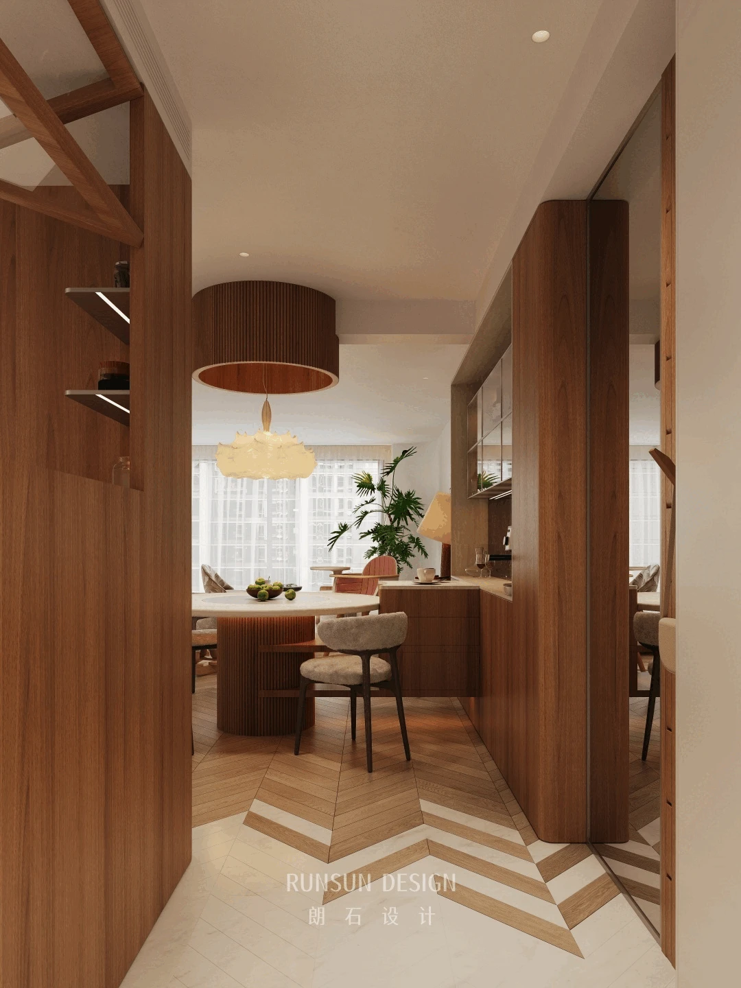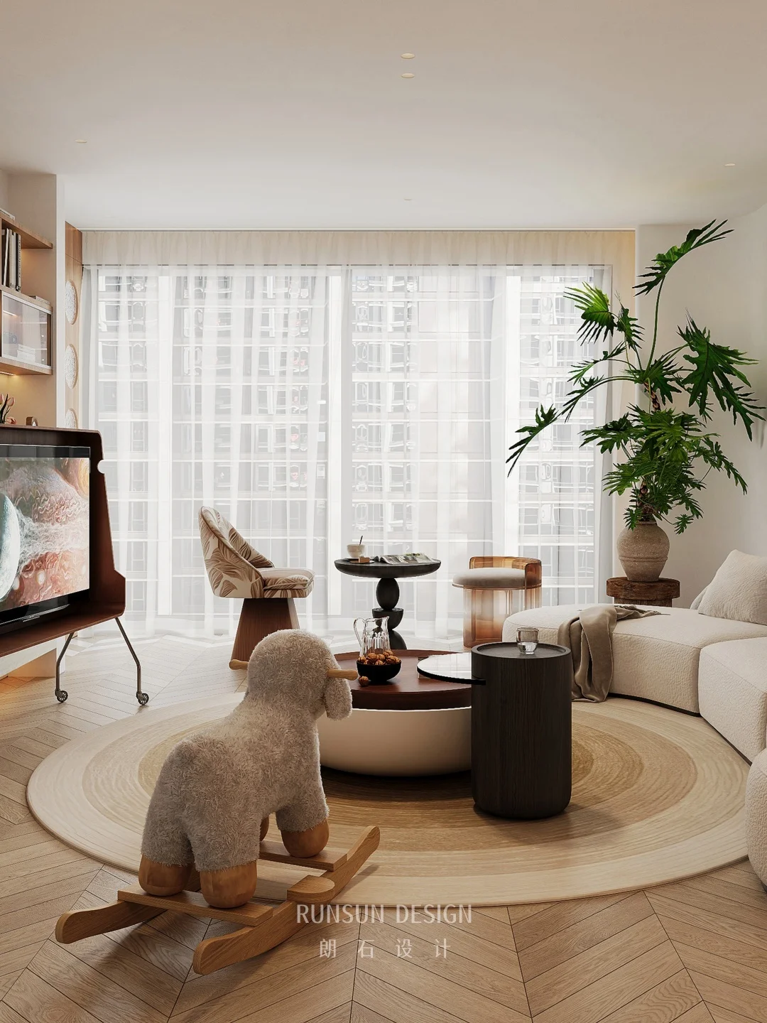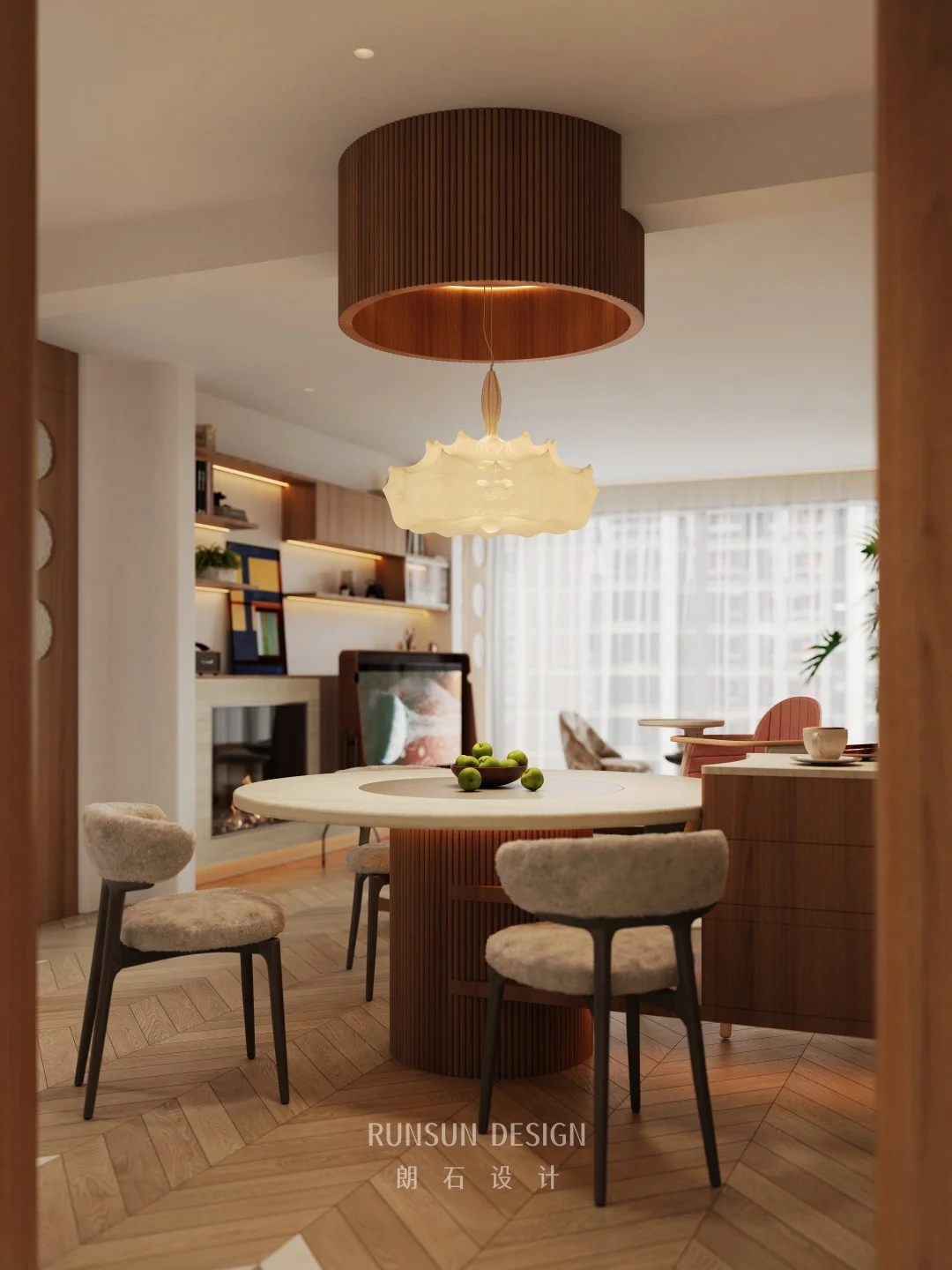 NEW CASE 一进门就被温柔包裹... 打通空间做洄游动线,客厅、餐厅、厨房连在一起, 大人做饭、办公、放松,都能随时照看到孩子,带娃瞬间轻松很多。 没有过度堆砌的童趣装饰, 却处处藏着为孩子考虑的细节:圆润边角、充足活动区、收纳拉满,颜值在线,实用性也在线。 这大概就是理想中的家吧,好看、好住、好治愈。