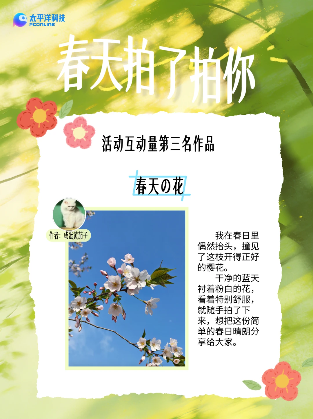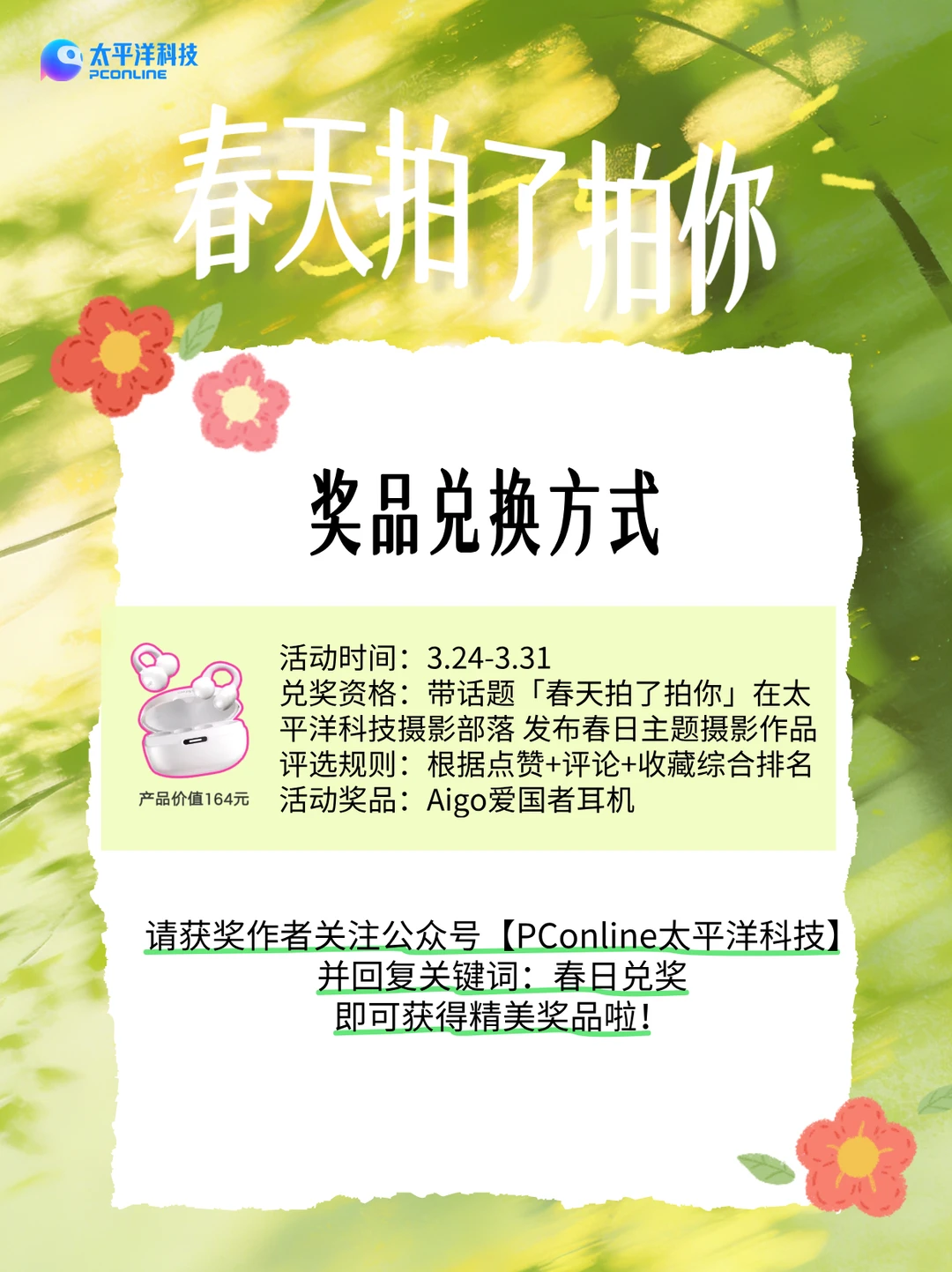 获奖的小伙伴记得去【PConline太平洋科技】公🐷号,发送👉春日兑奖,