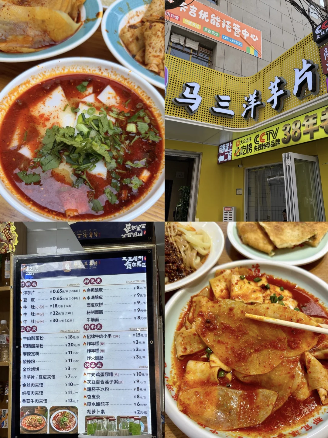 高担酿皮必点,麻酱超浓;还有麻辣三样,土豆片+宽粉,香辣过瘾
