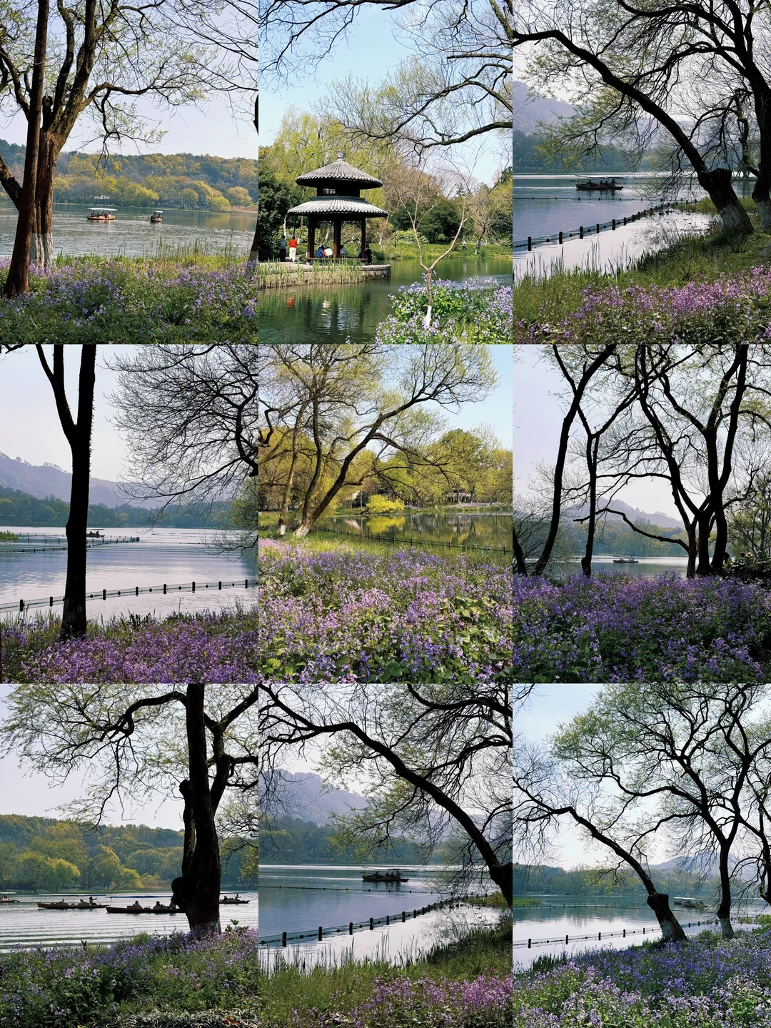 🌞白天:曲苑风荷→郭庄→茅家埠→乌龟潭→鹆湖湾→花港观鱼→太子湾