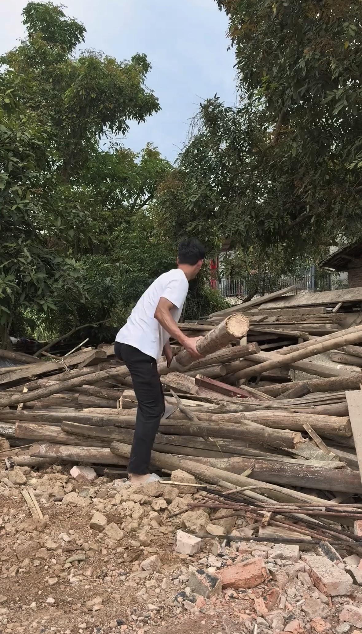 唐尚珺新房子还在继续施工,唐尚珺清明节回老家清理老房横梁。 清明节放假三天唐尚珺没有出去玩,也没有和小伙伴搞直播带货,而是回老家祭祀并帮老妈做些农活。 放假第一天唐尚珺将之前老房拆掉的横梁换了个地方,能用的放一块,不能用的就做柴火烧锅用,还别说唐尚珺能文能武,锯木头劈木桩不在话下。唐尚珺放假回家