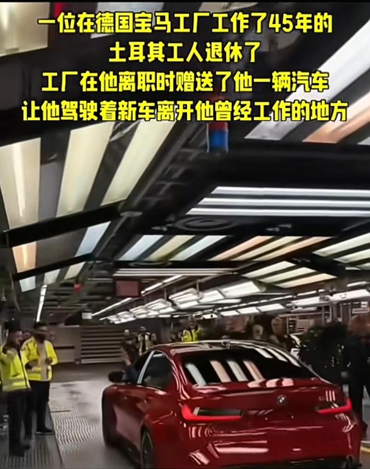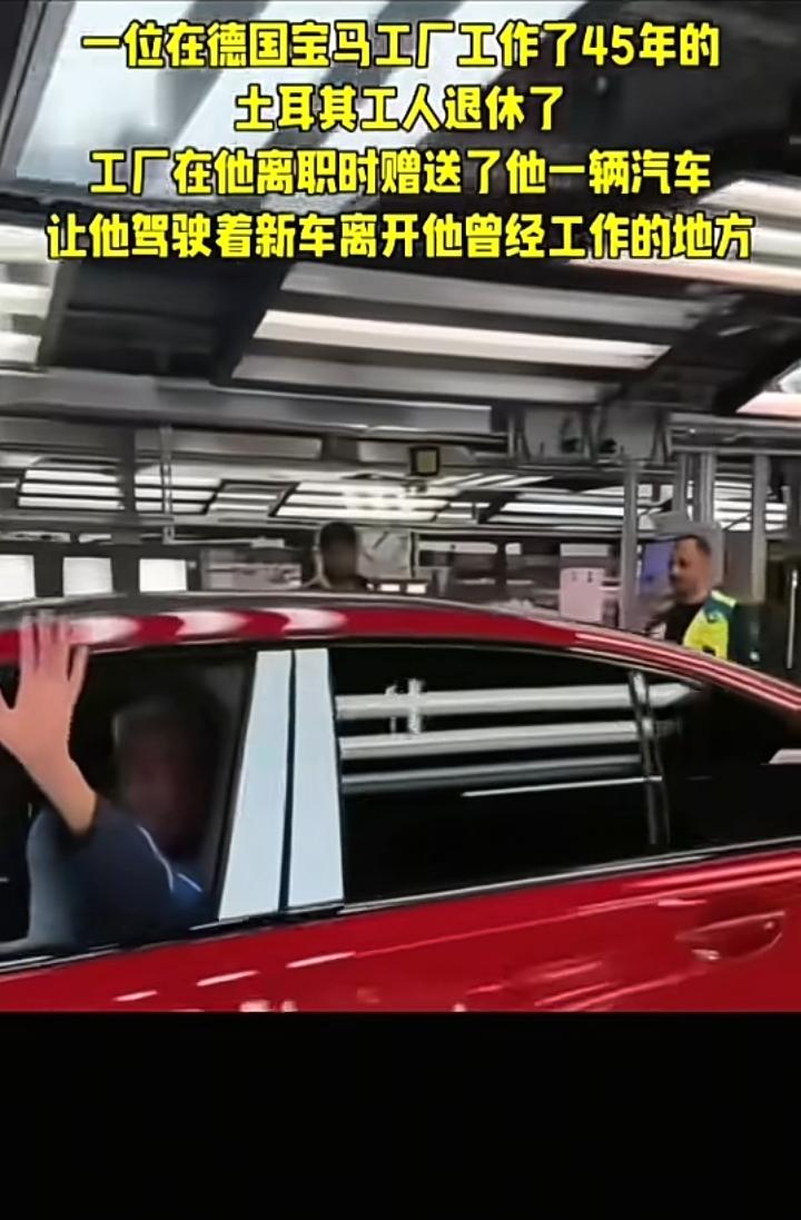 一名土耳其工人在德国宝马汽车工厂工作45年后退休,为了表彰他的不懈努力和坚持,汽车公司赠送了他一辆红色汽车,在送别仪式上他掩面不舍,众人鼓掌欢送,试问谁可以在一家公司奉献45年,可以说真的是专一又敬业,我见过国内在一家工厂待10年左右的比较多,电子厂一般都是半年左右,默默无闻的付出换来老年的安稳,或许是很多人梦寐以求的。