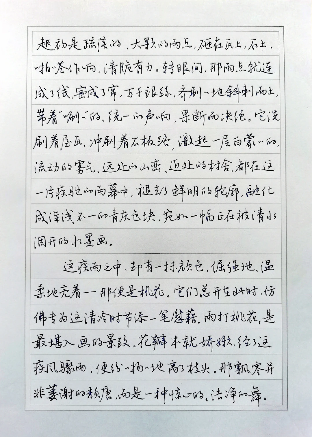 硬笔行书手抄散文《清明春雨疾如风》