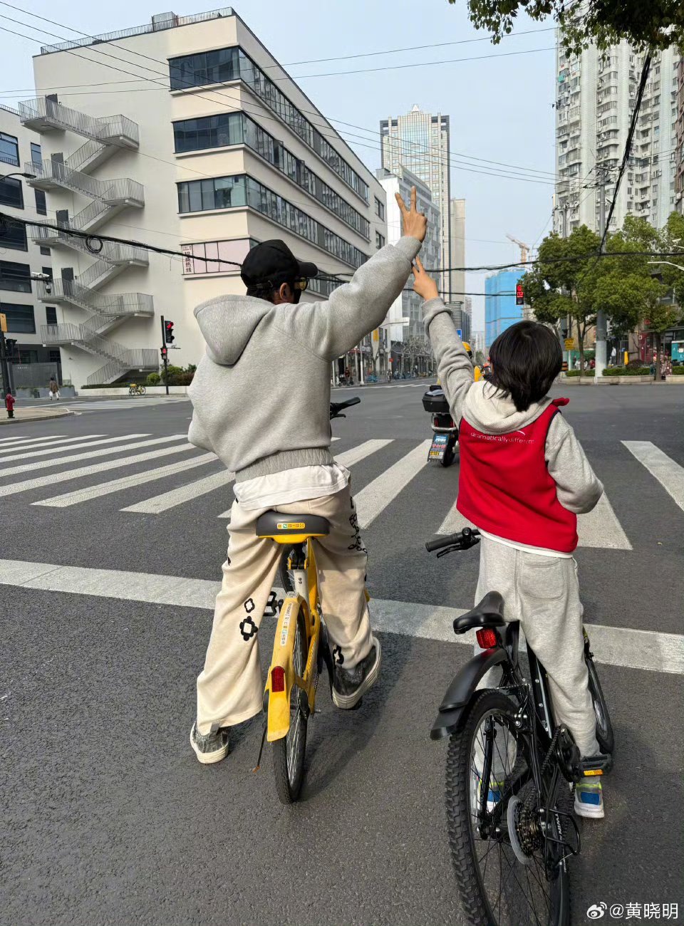 黄晓明晒和儿子春日骑行照黄晓明发文晒和儿子春日骑行照,小海绵长这么大啦!爱看这种