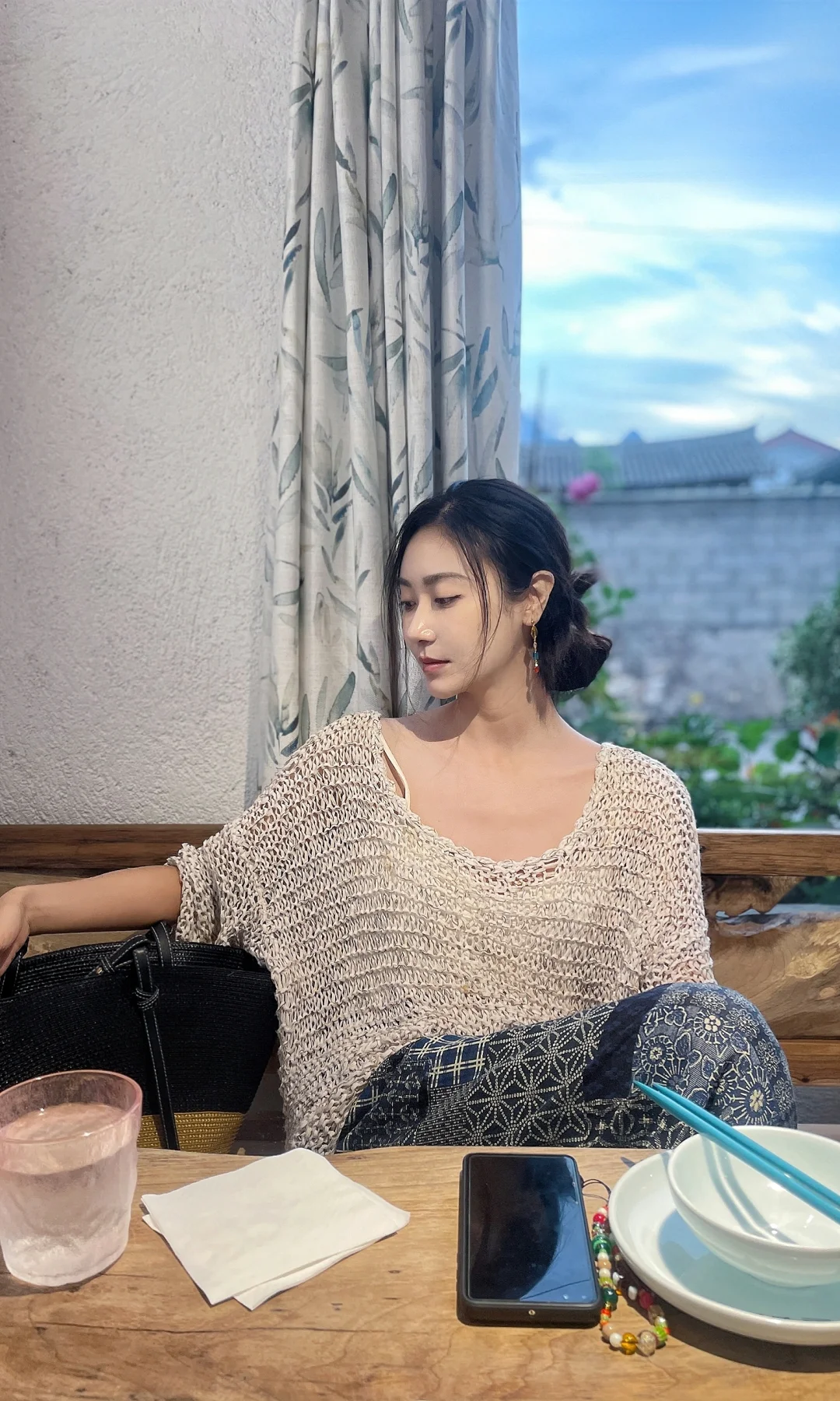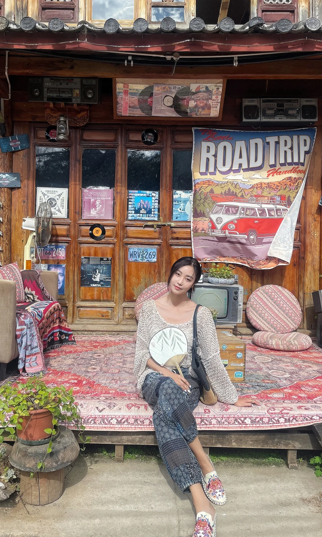 谁懂啊!在白沙古镇三层楼顶喝咖啡,抬头就是玉龙雪山,蓝天白云配着慵懒穿搭,这一刻的惬意真的能治愈所有疲惫🌿 👗穿搭解析 米白镂空针织衫自带透气慵懒感,适配云南明媚天气;蓝调拼花束脚裤自带民族氛围感,还能藏肉显瘦;搭配绣花布鞋,和古镇、雪山的氛围完美契合,随手站着都出片! [打卡R]打卡攻略 白沙古镇人少清净,逛完纳西古街,一定要去这几家咖啡厅看雪山! ✅7 sea咖啡:三层露台直面雪山,视野超绝 ✅Kawa咖啡:原木风装修,拍照超有质感 ✅白沙老味咖啡:老院子里喝咖啡,氛围感拉满