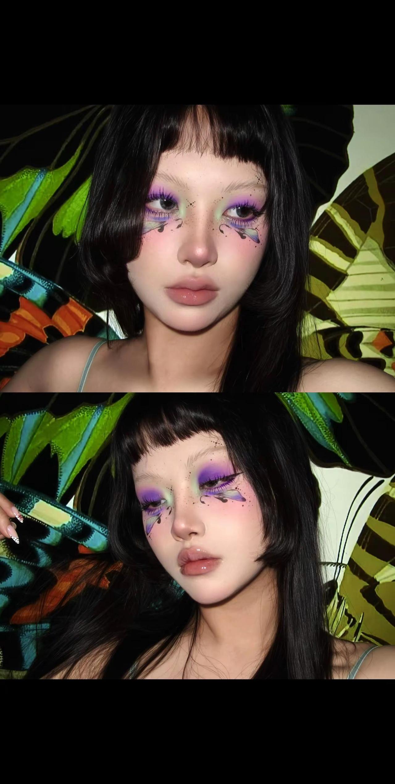 ⊹꙳. 紫光羽.⊹꙳。以玫瑰青凤蝶为灵感画了这组妆容,妆教在路上了🫧春天又开始画鲜明的紫色系💟创意妆 蝴蝶眼妆 一些适合淡人的彩妆 甜丧妆容