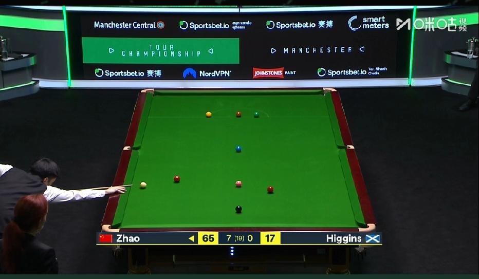 8-0遥遥领先!没什么悬念了,赵心童晋级决赛稳了,希金斯已经无力回天! 4月4日斯诺克巡回赛锦标赛半决赛,第一阶段,赵心童打出8连鞭,6杆50,一杆破百8-0遥遥领先希金斯,进决赛问题不大! 比赛采用规则19局10胜制,第一阶段上半场第一局比赛,希金斯率先进攻打到11出现失误,赵心童打出总分65分拿下,第二局,希金斯率先获得进攻机会打出46分出现失误,赵心童直接上手打出单杆69分拿下,第三局,赵心童打出单杆64总分118再下一局打出3连鞭3-0领先希金斯,第四局,希金斯率先上手打到50分底袋红球没有打进,希金斯发力太重了,出现失误赵心童直接上手一杆清台单杆81分逆转希金斯,上半场双方进入局中休息时间! 下半场比赛第五局,赵心童打出单杆74总分90再下一局连续四局打出单杆50+表现!第6局,赵心童率先进攻打出单杆78分直接拿下,目前赵心童已经打出6连鞭和5杆50+表现。可以说完爆希金斯,比赛形成了一边倒的局面!第7局,希金斯长台进攻打进拿到1分转换防守,赵心童再次上手,过程中母球险些进底袋,随后底袋也没有打进拿到58分,双方进行防守回合,这一局赵心童打出单杆62总分120拿下。第8距,赵心童轰出单杆104拿下!第一阶段赵心童8连鞭8-0领先希金斯!
