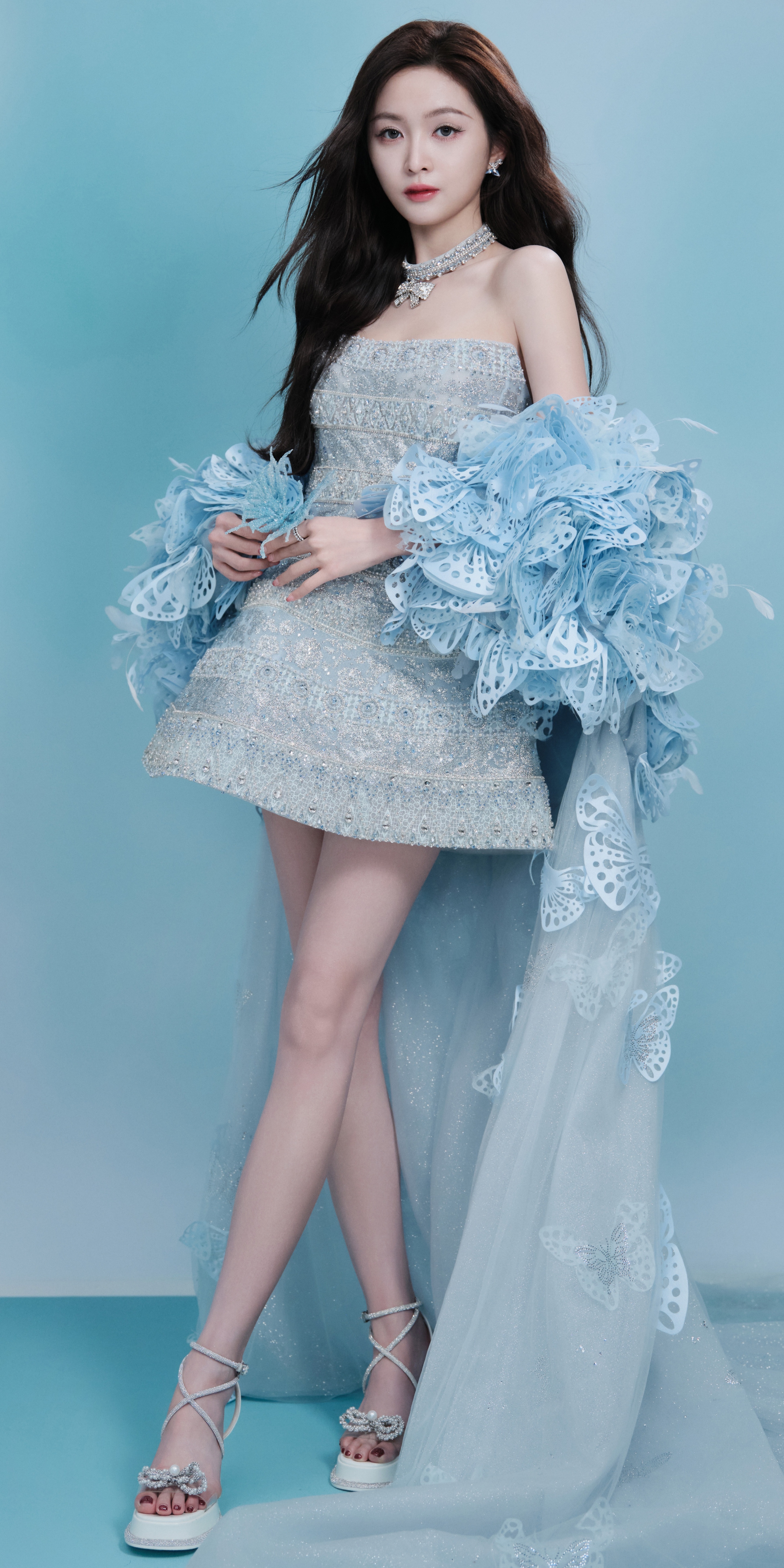 吴宣仪:淡蓝幻景中的一抹甜美。吴宣仪
