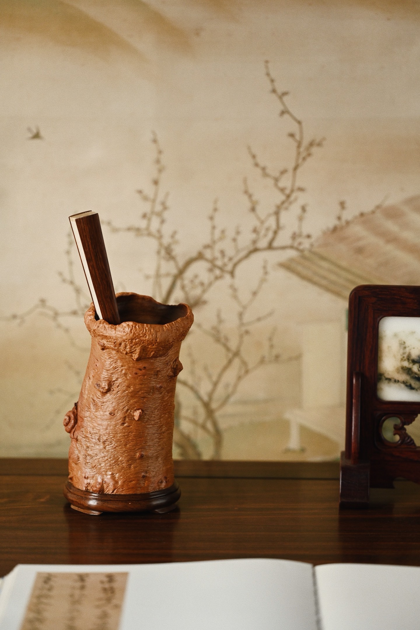 荔枝木 | 安居乐业 笔筒