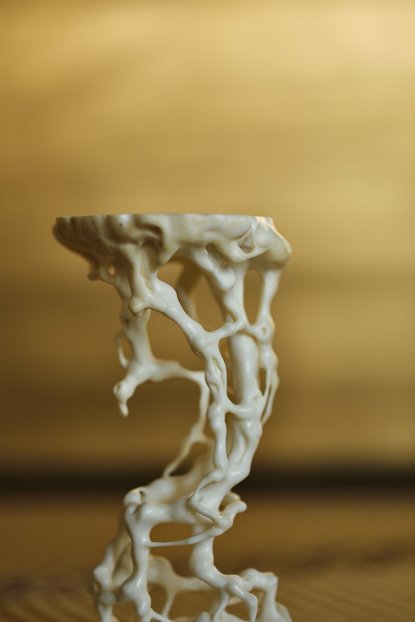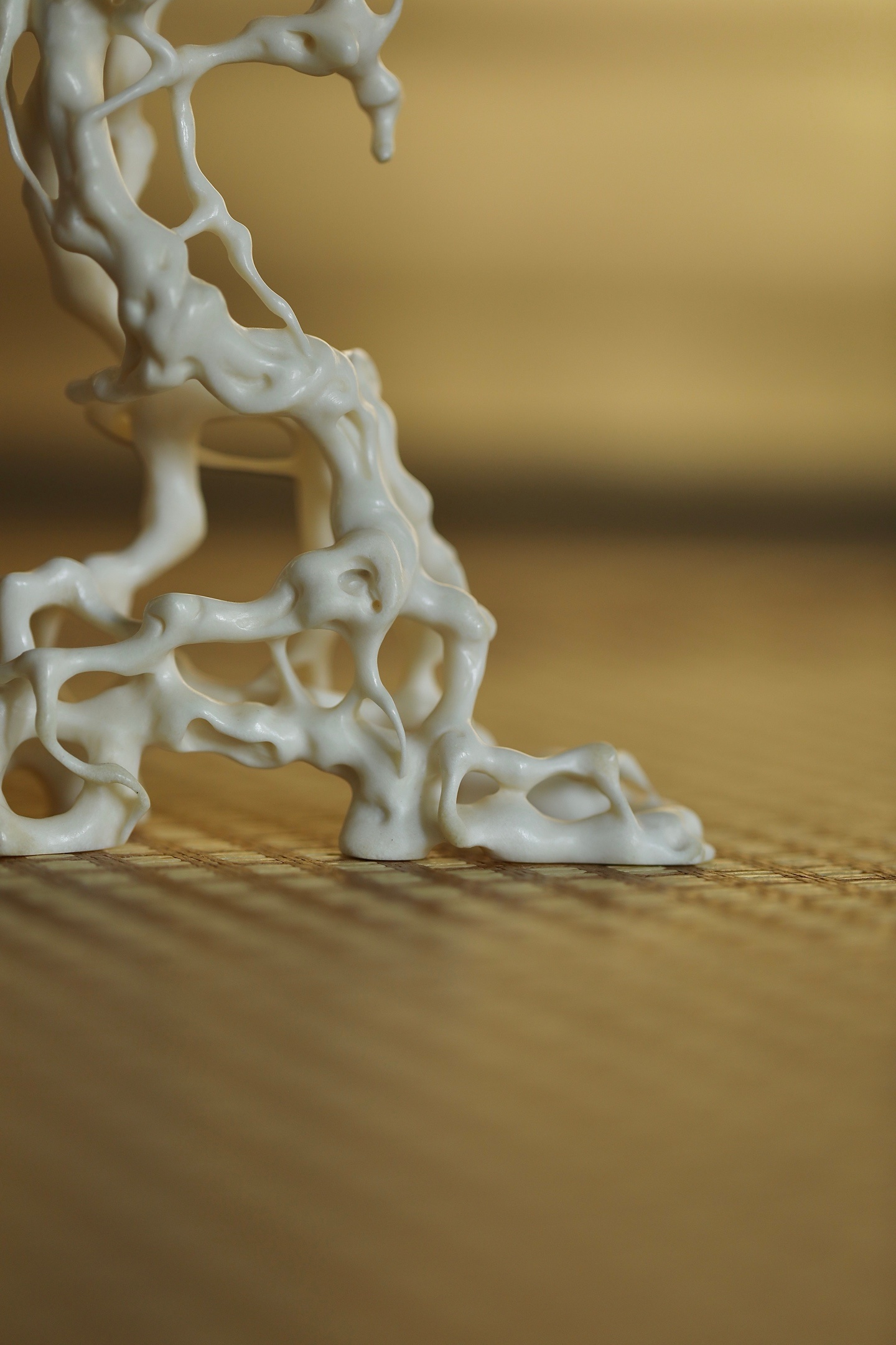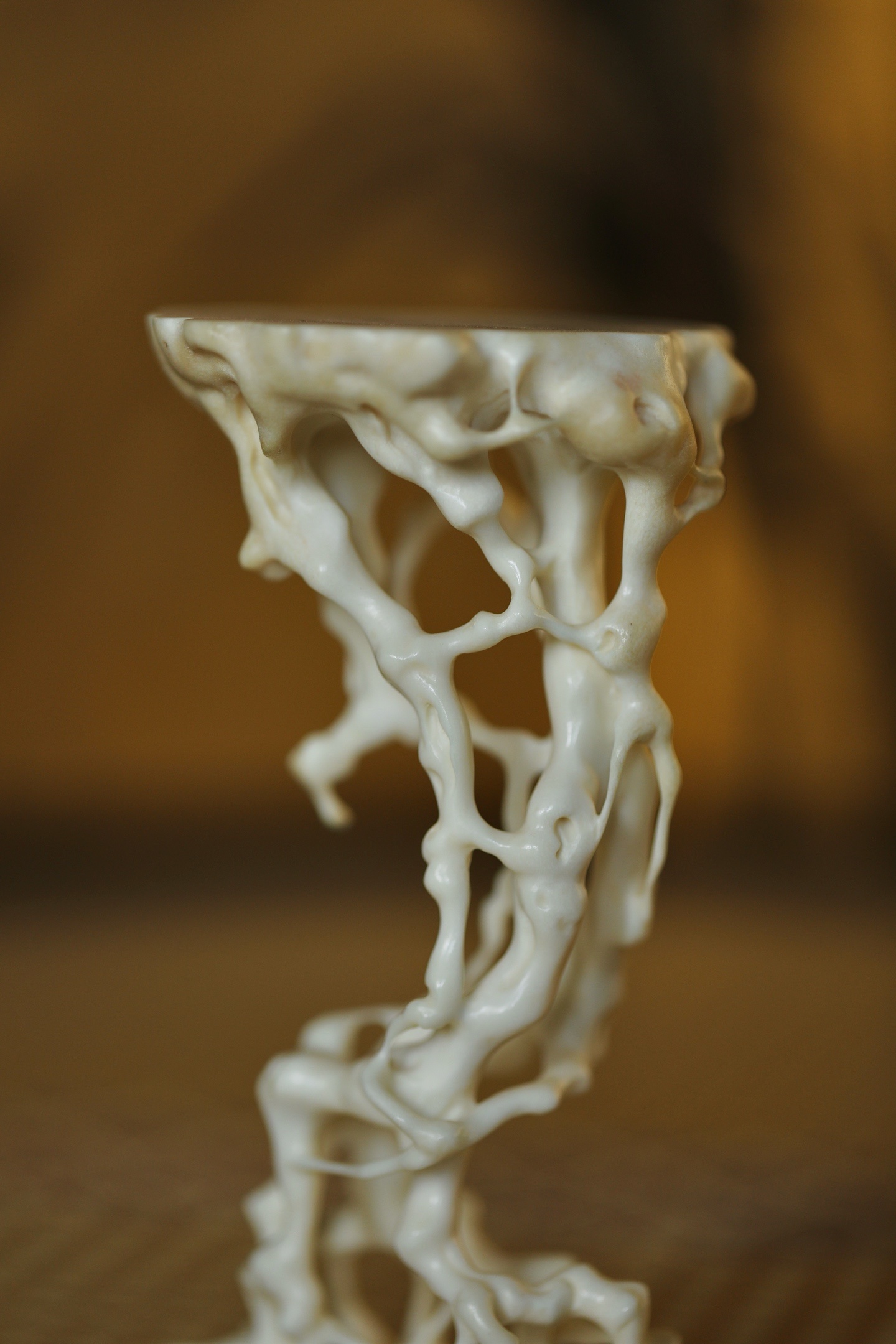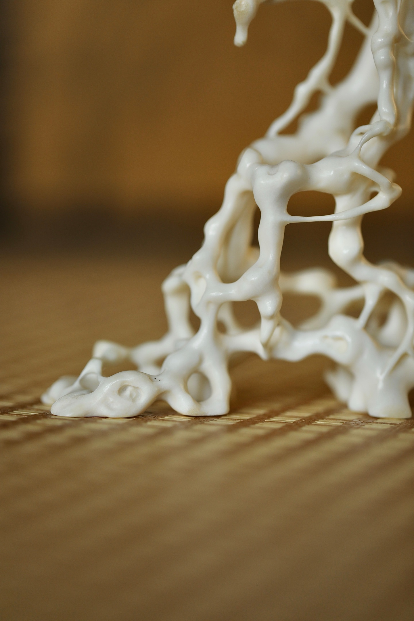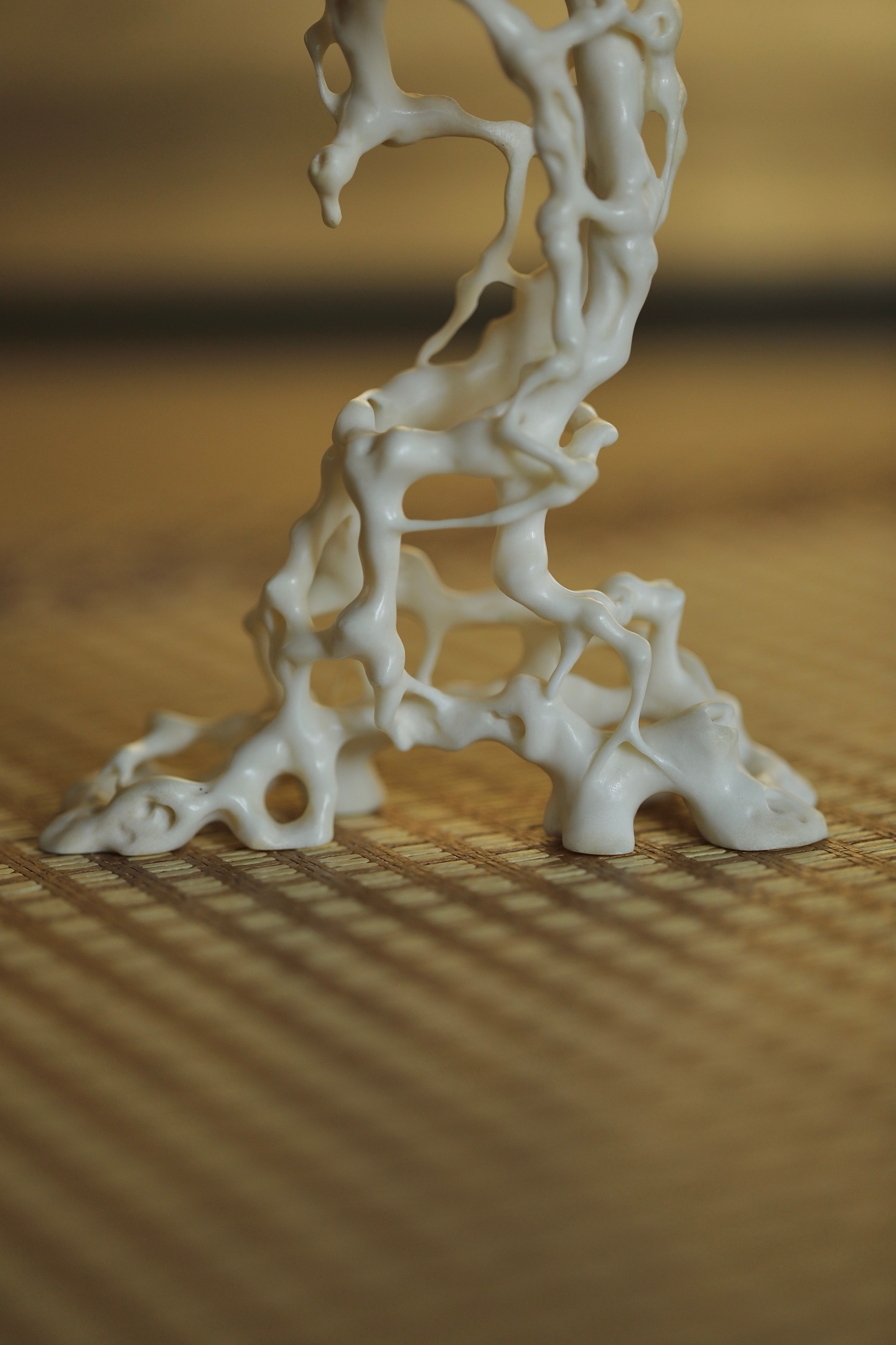 鹿角 | 根雕底座仿天然盘根错节之貌,枝蔓缠绕,孔洞玲珑,线条婉转流畅,虚实相生