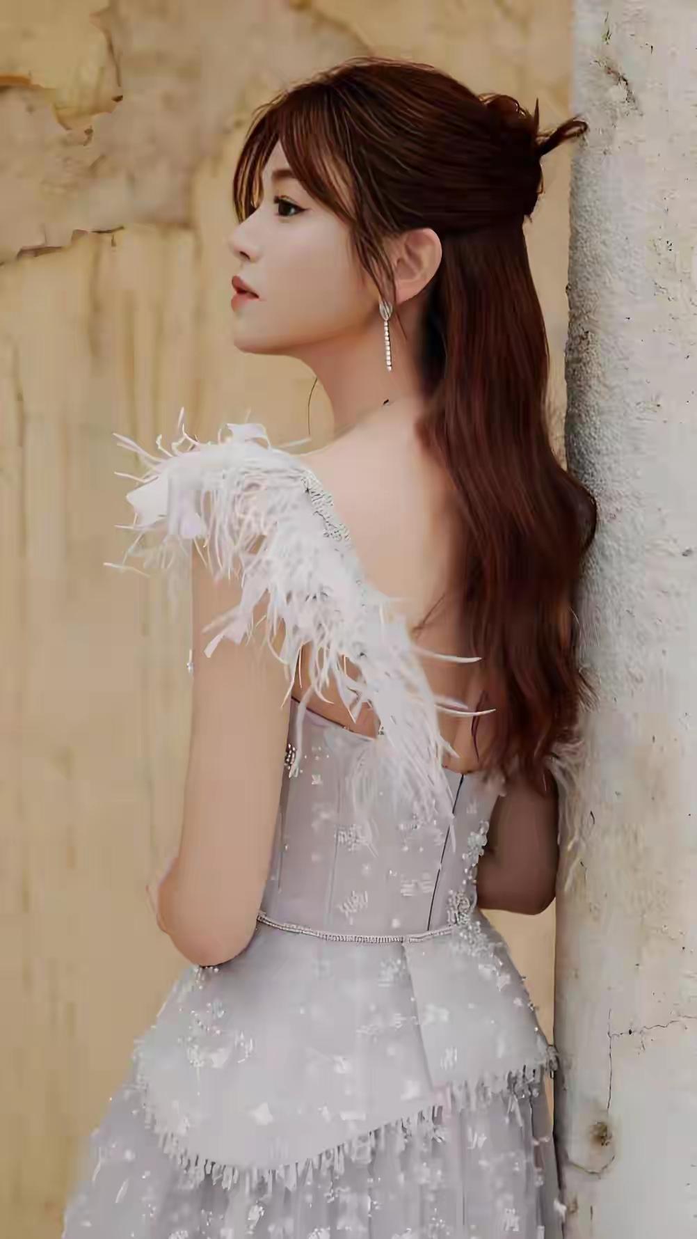 美女壁纸~古力娜扎一袭挂脖露背长裙,鎏金缎面裹着曼妙身姿,复古耳饰点亮慵懒风情,