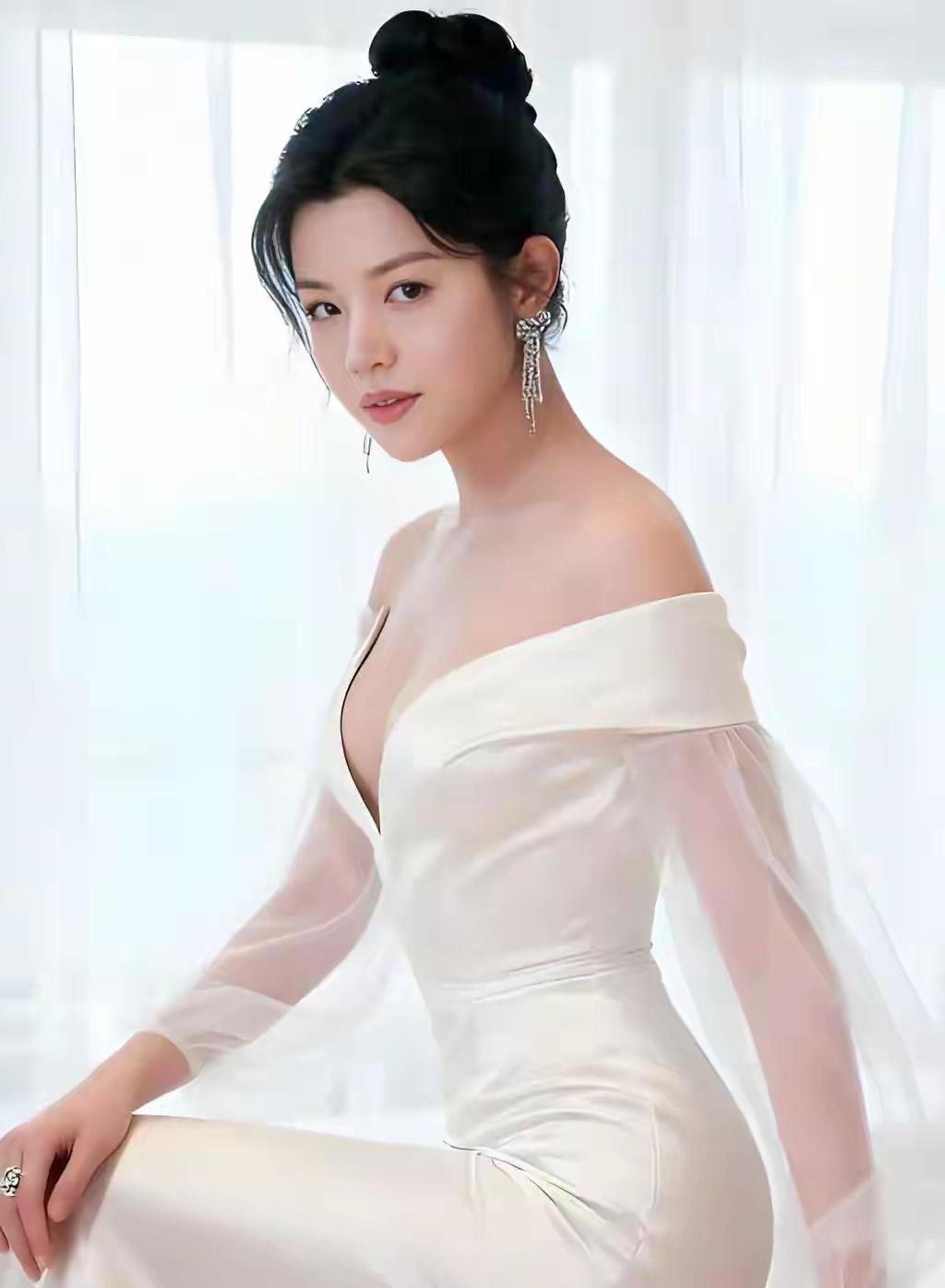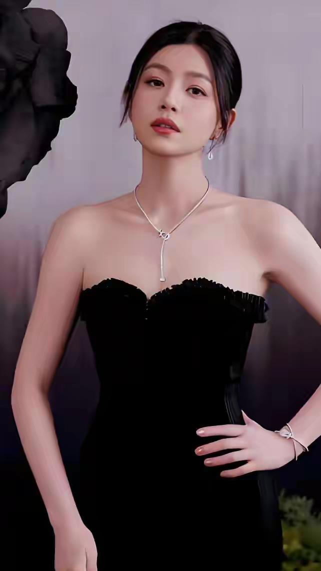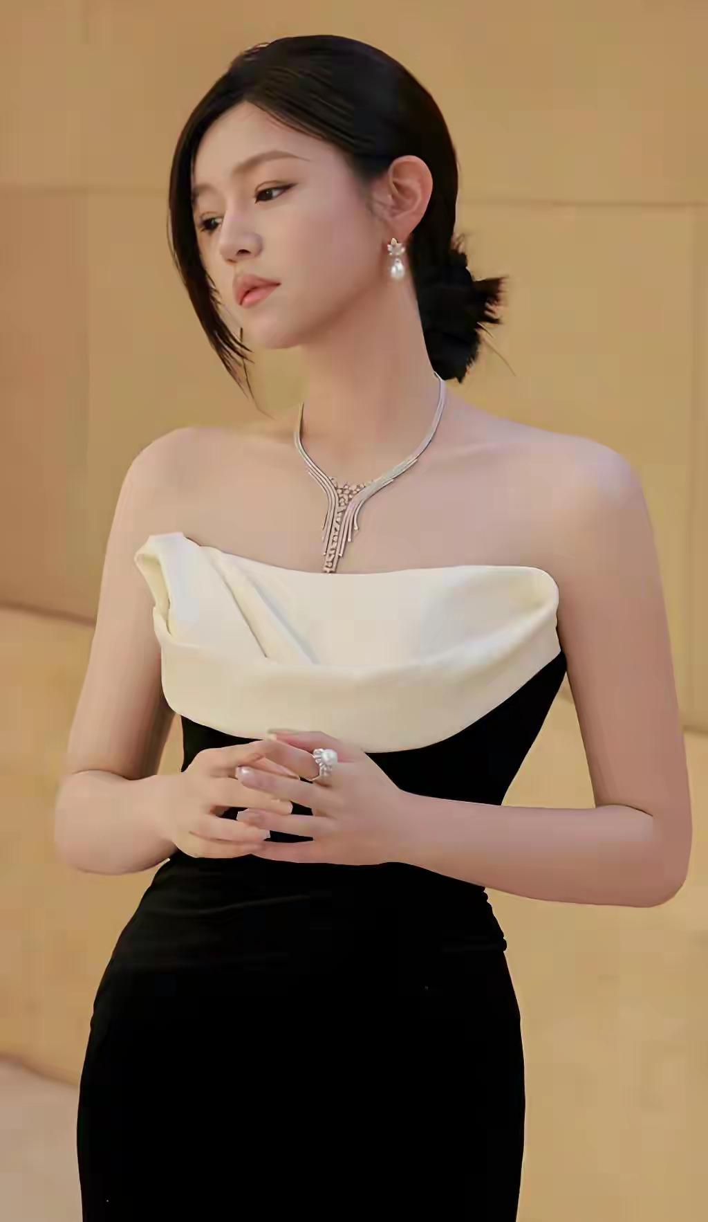一袭长裙的御姐型美女,那气场简直绝了。就说穿搭,黑色丝绒包臀紧身长裙配黑色缎面吊