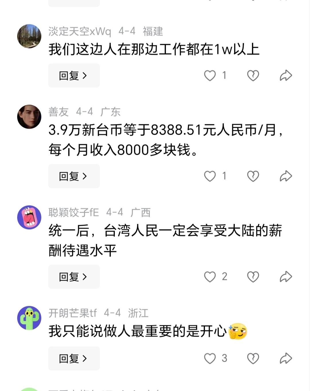 有大陆媒体报道称,台湾餐饮业劳工平均月薪3.9万新台币,按照购买力计算,相当于大陆3000元人民币,很多大陆网民破防了,痛骂“文章是给基本盘看的!” 有大陆网民举油价、便当的例子,证明台湾的物价并不高。台湾油价由于不含税,确实比大陆低;至于便当,台湾也只是比大陆稍贵或持平。但除此之外,台湾大多数商品都比大陆贵,不管是汽车、家电、装修费用还是生活用品,有的甚至贵三倍以上。 以前在台北看到陆配装修两小间店面,最多20平方米,不算餐具,光装修费就要50多万新台币。由于装修成本高,台湾很多店家都是将就用,所以普遍老旧、寒酸也就不奇怪了。 再以台湾用车成本来看,虽说油价便宜一点,但车价动辄是大陆两三倍,算上税费、停车费,用车成本比大陆高不少。 台湾民众工资水平二三十年不涨,基层民怨很大。按当前的物价,在台北3.9万新台币真的存不下什么钱,台湾专家也这样说,大陆网民却不买账,不知是什么心态?