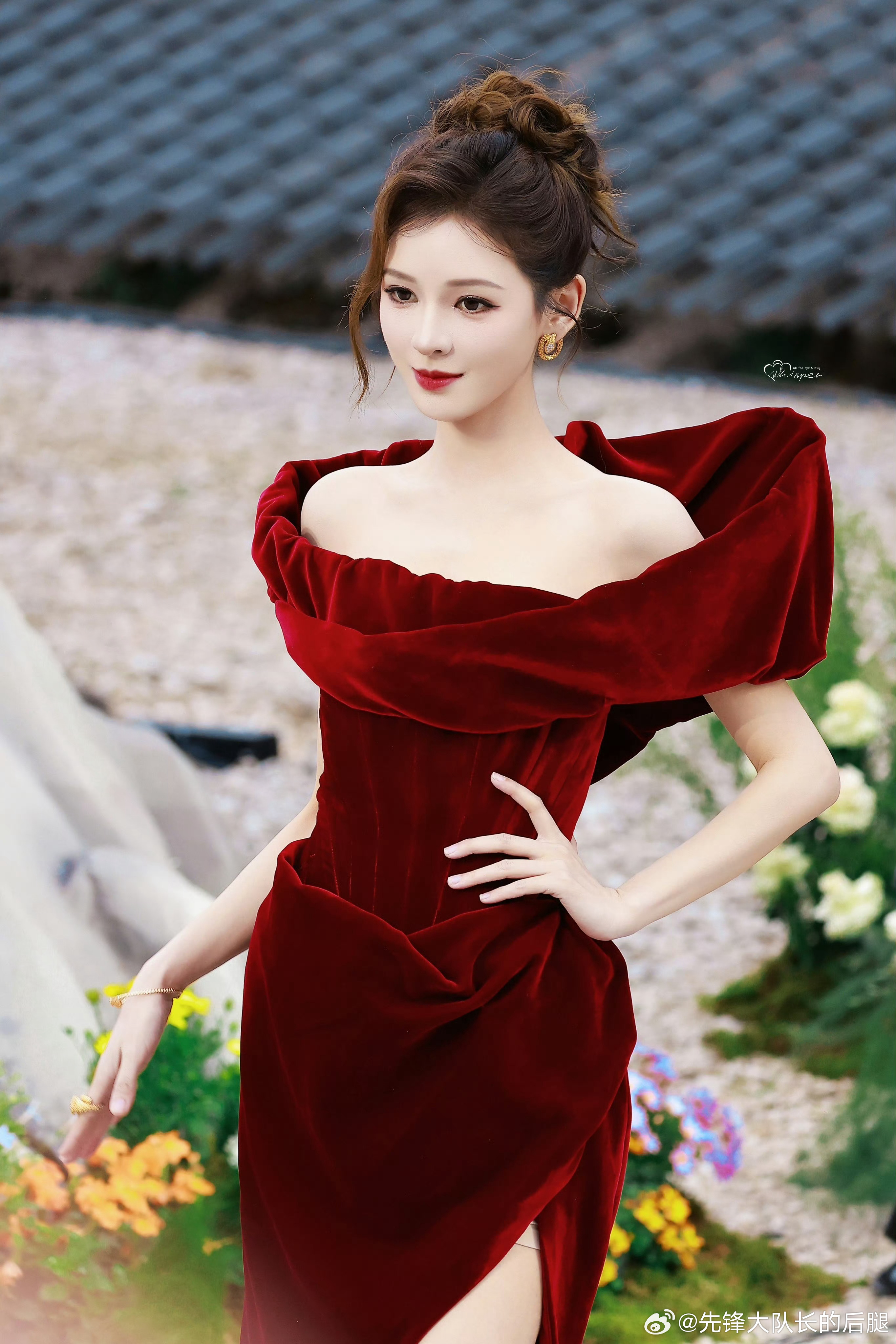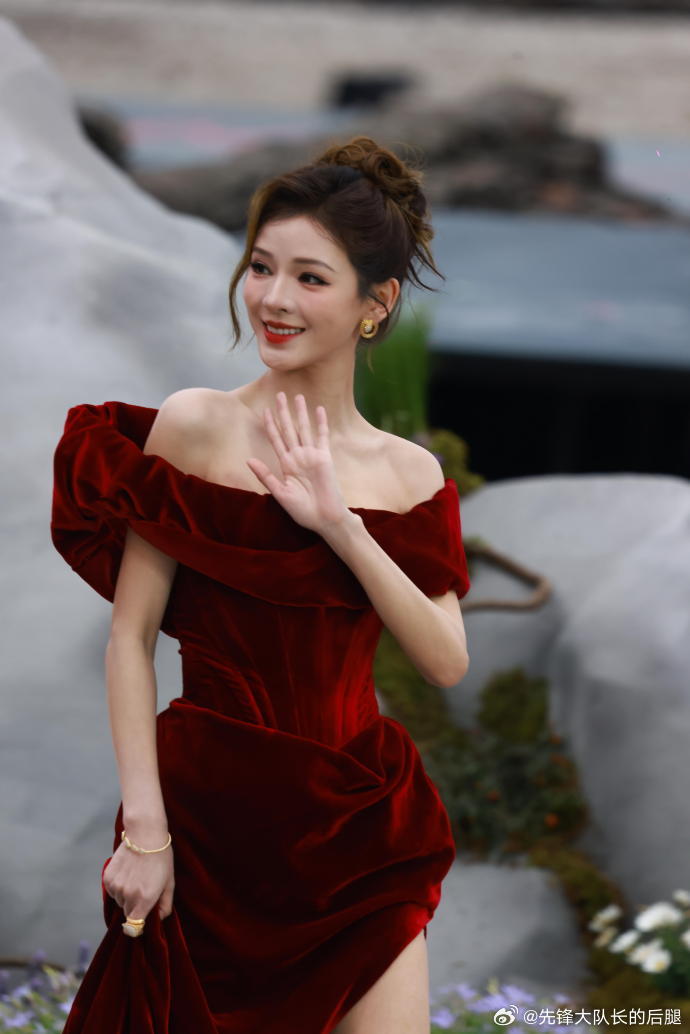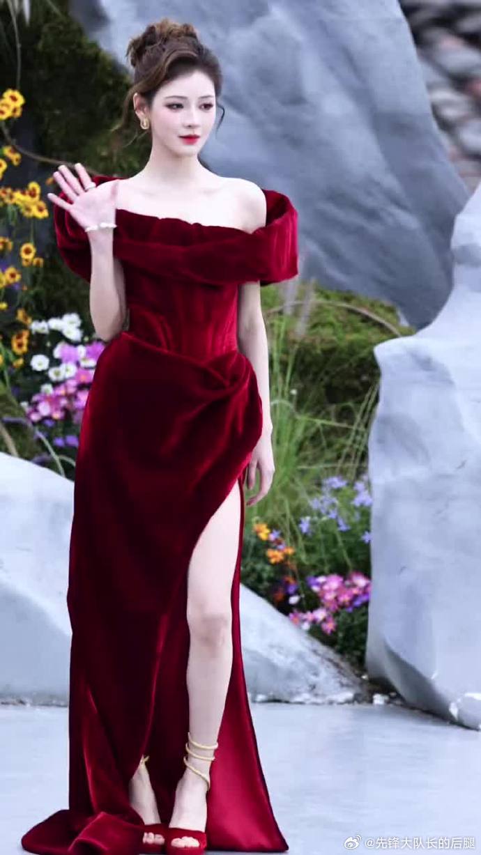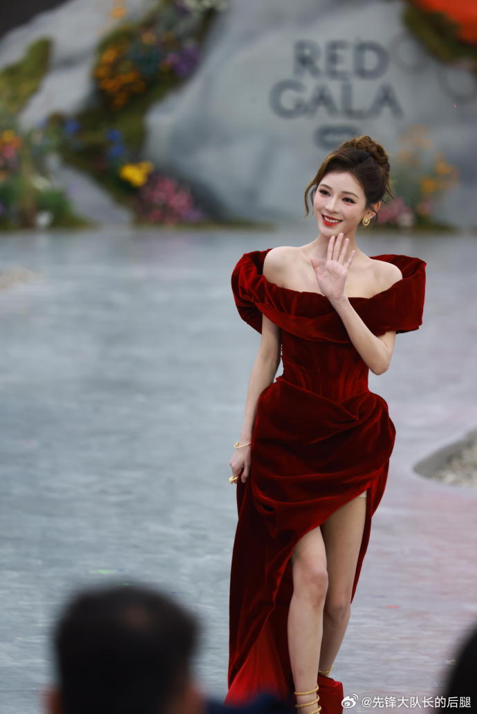 张予曦REDGALA红毯出图红色开叉裙