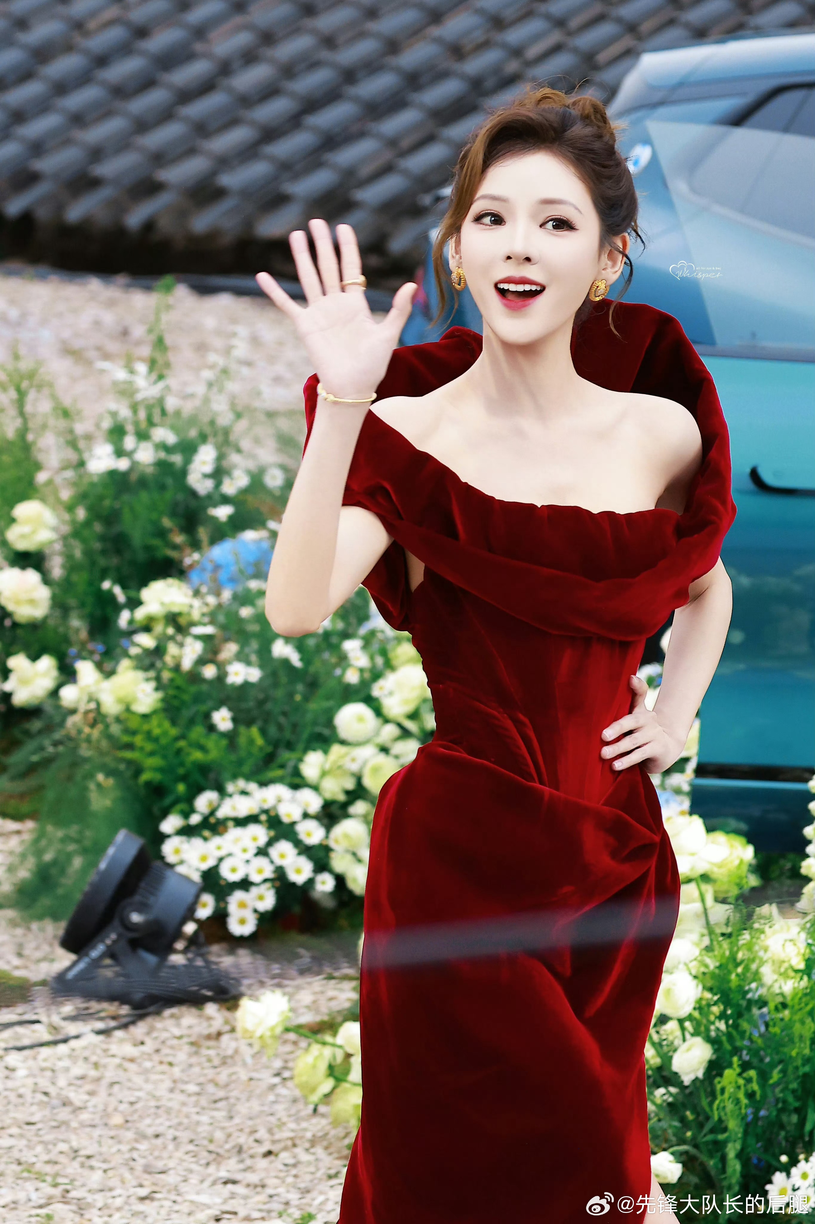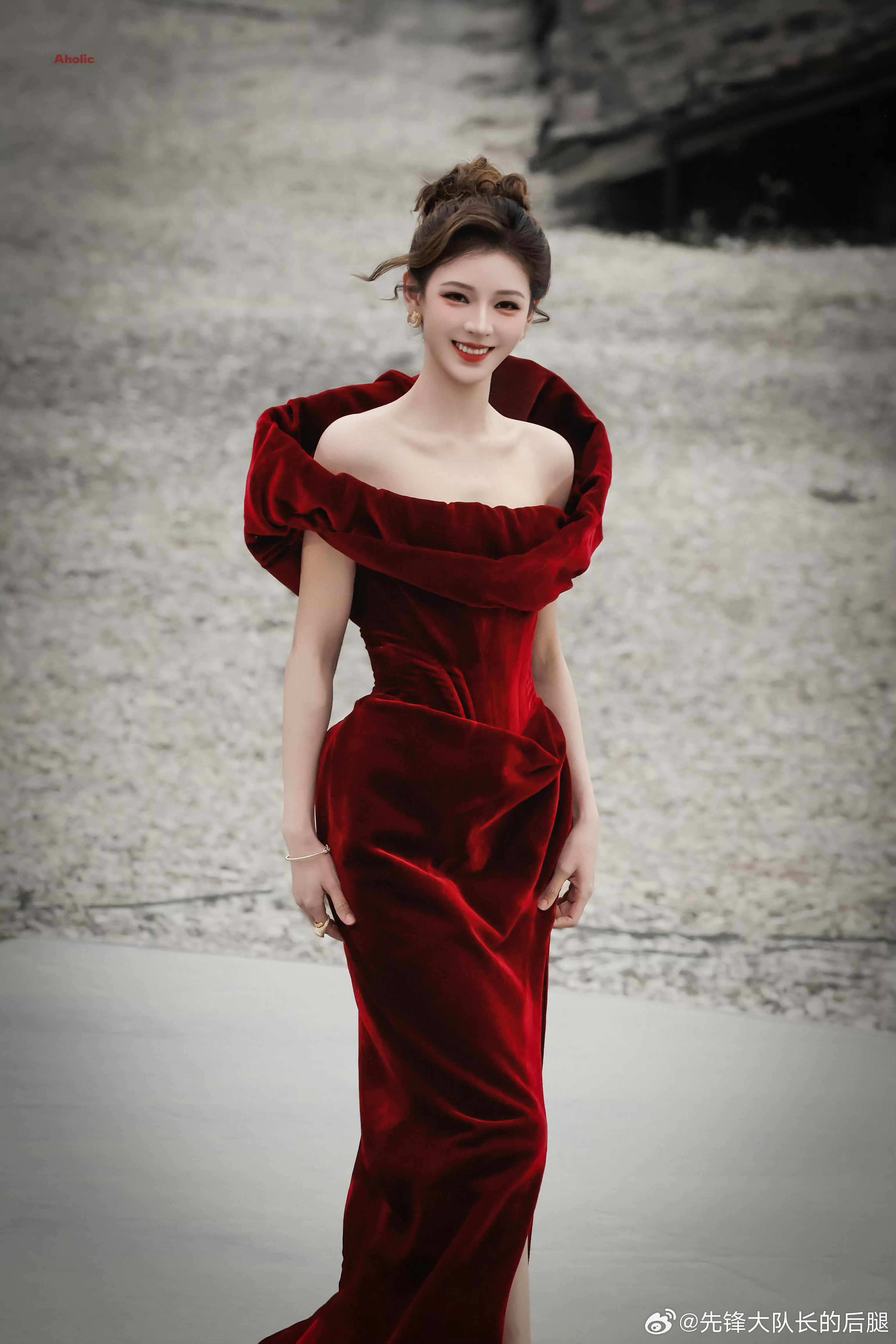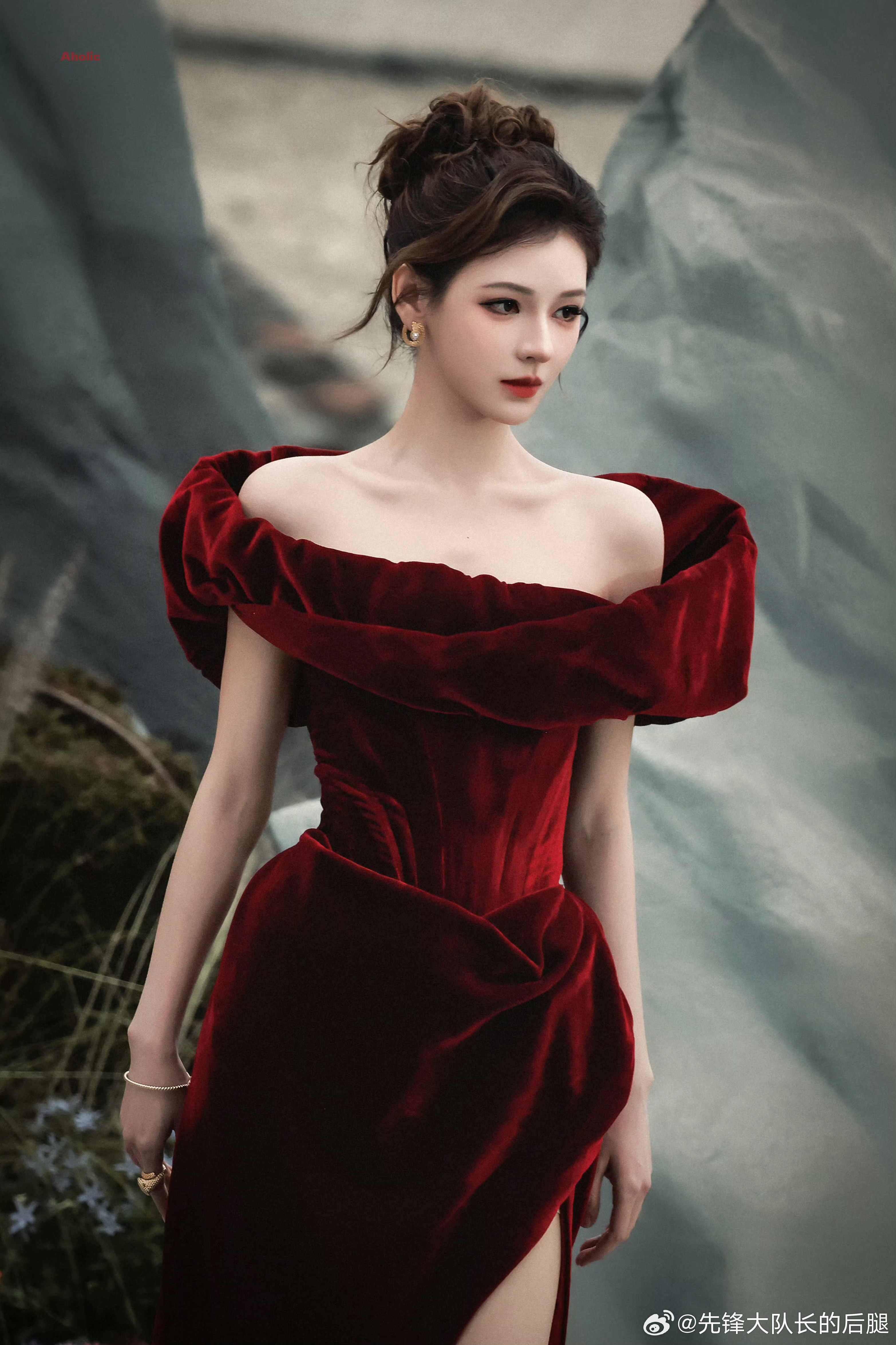 张予曦REDGALA红毯出图红色开叉裙